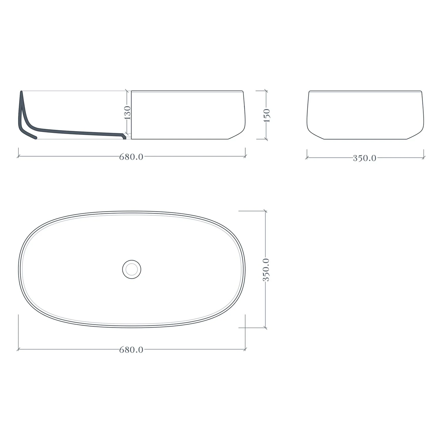 ALLUVION Apollo Aufsatzwaschtisch 68 x 35 cm