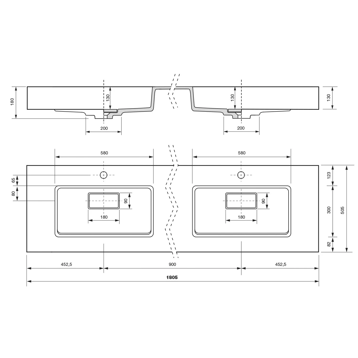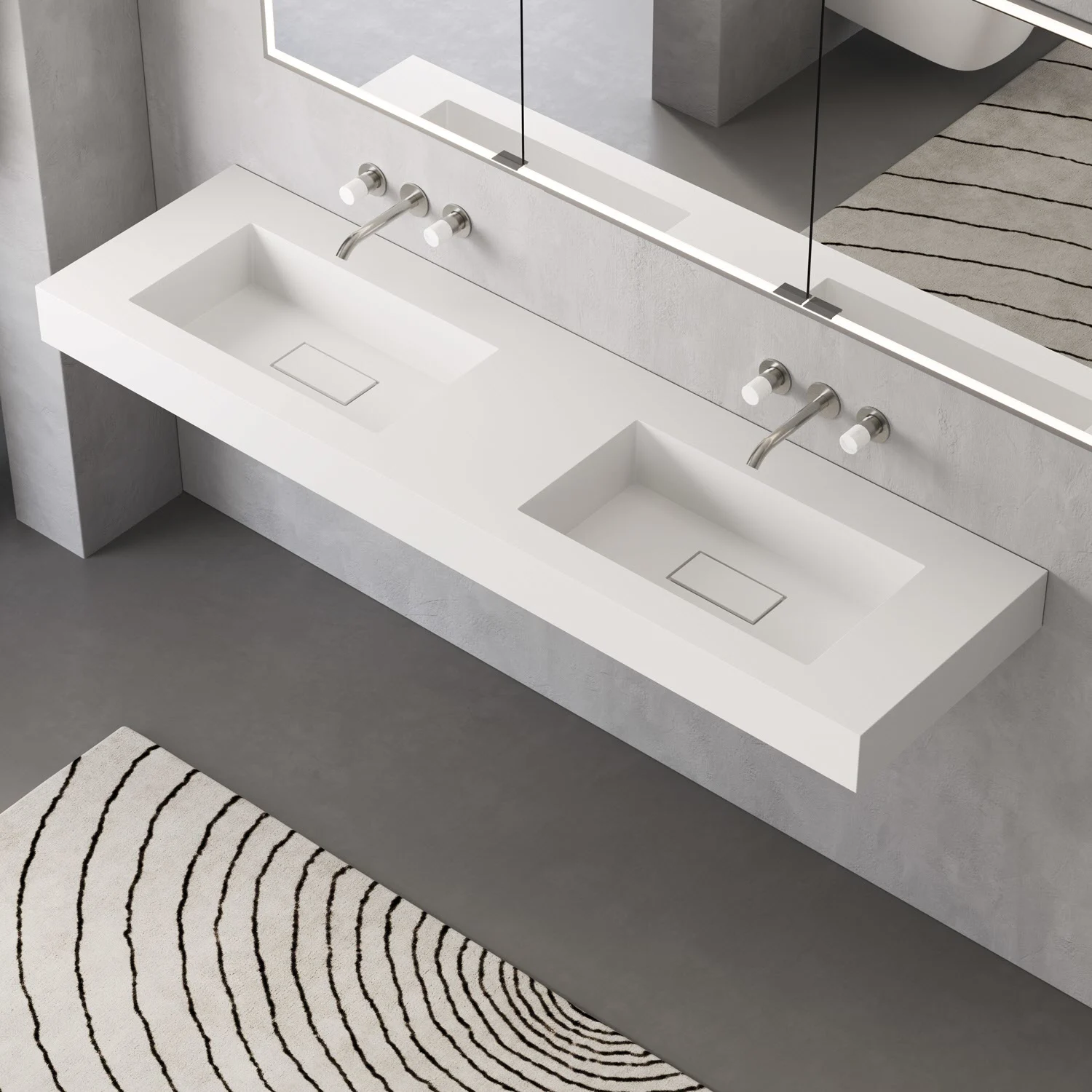 ALLUVION Eros Doppel-Waschtisch 180 cm, ohne Hahnloch