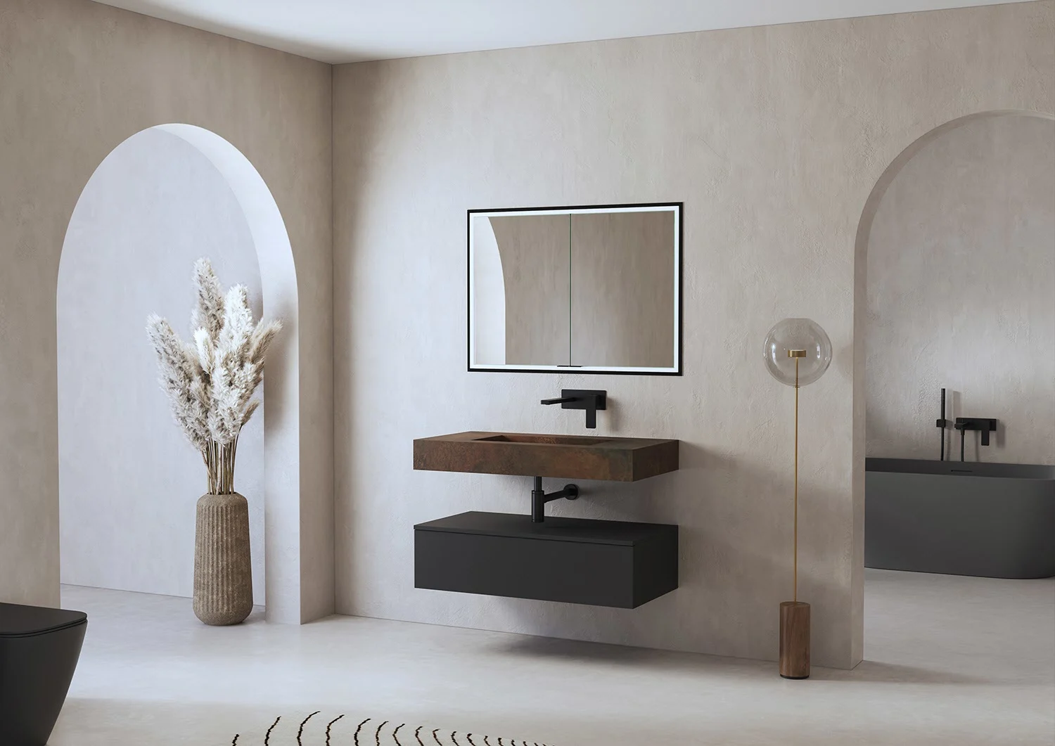 ALLUVION Pluto Spiegelschrank 100 cm, Unterputz, 2-türig