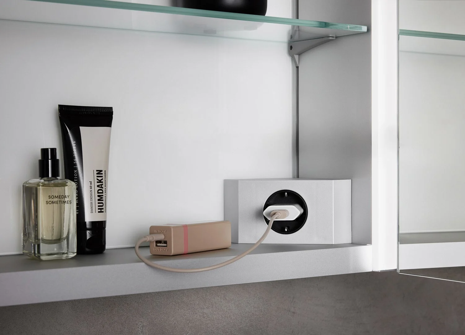 - 3 Steckdosen im Spiegelschrankinneren ermöglicht die Nutzung eines Föhns oder das Aufladen einer Zahnbürste.