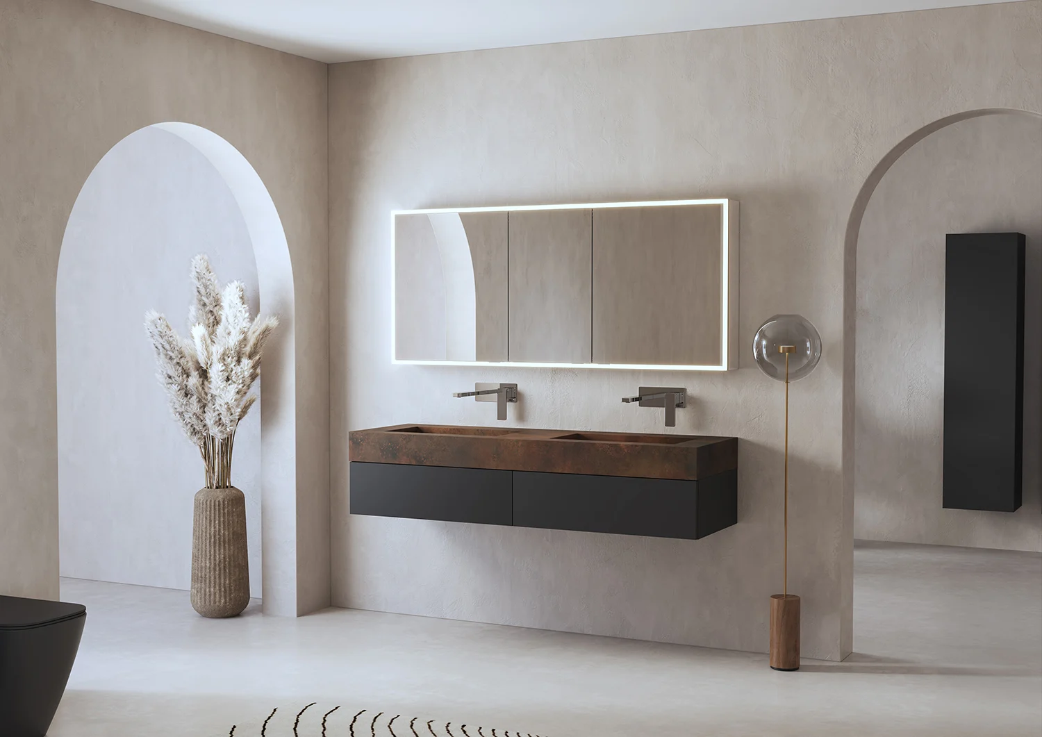 ALLUVION Pluto Spiegelschrank 140 cm, Aufputz, 3-türig