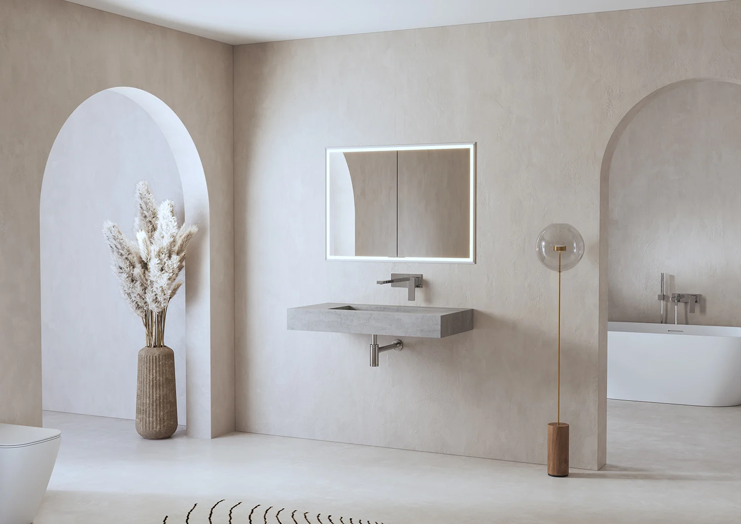 - 4 stufenlos verstellbare Glasablagen bieten ausreichend Platz zur Aufbewahrung von Badutensilien.