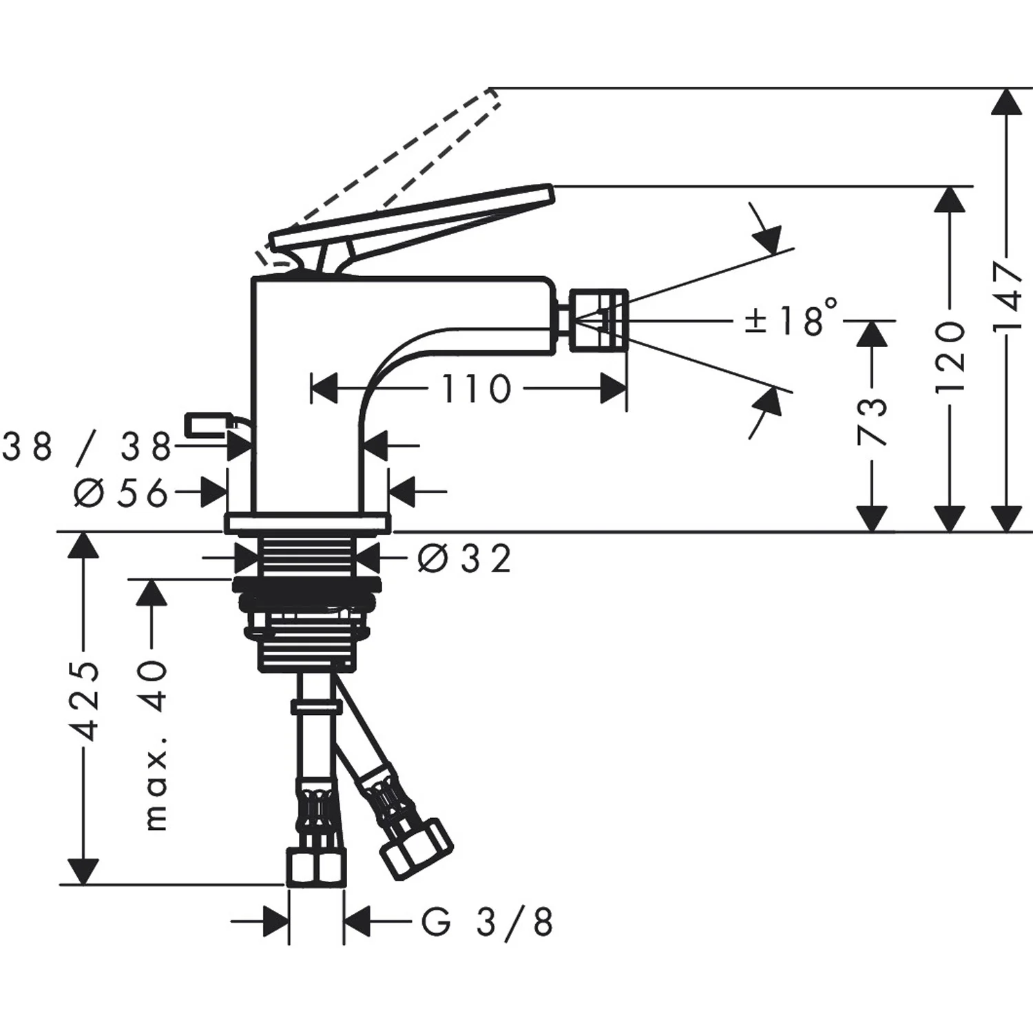 AXOR Citterio Einhebel-Bidetmischer mit Hebelgriff und Zugstangen-Ablaufgarnitur
