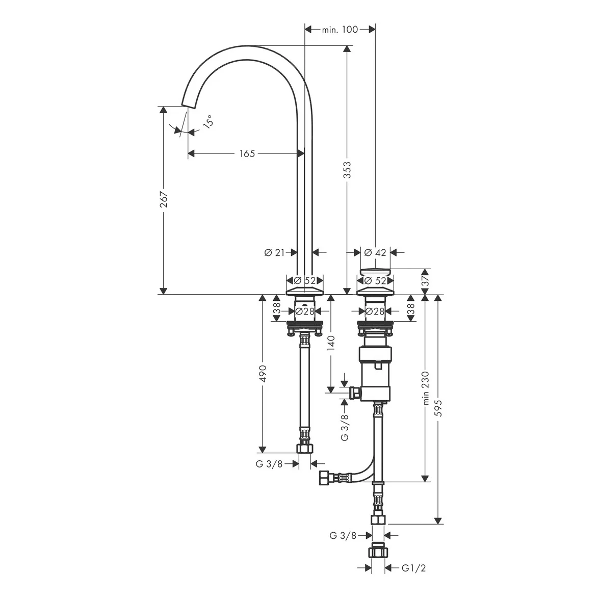 - flexible Anordnung von Bedienelement und Auslauf möglich