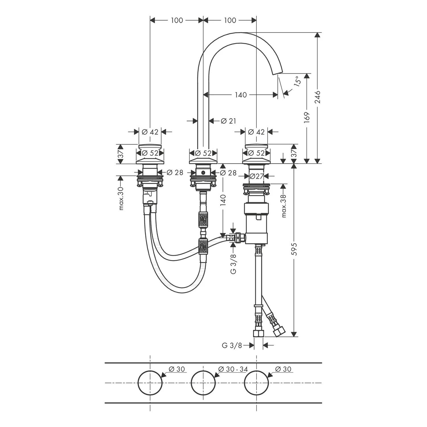 - Waschtischarmatur mit Ablaufgarnitur für 3-Hahnlöcher