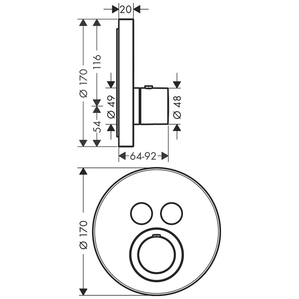AXOR ShowerSelect Round Thermostat für 2 Verbraucher