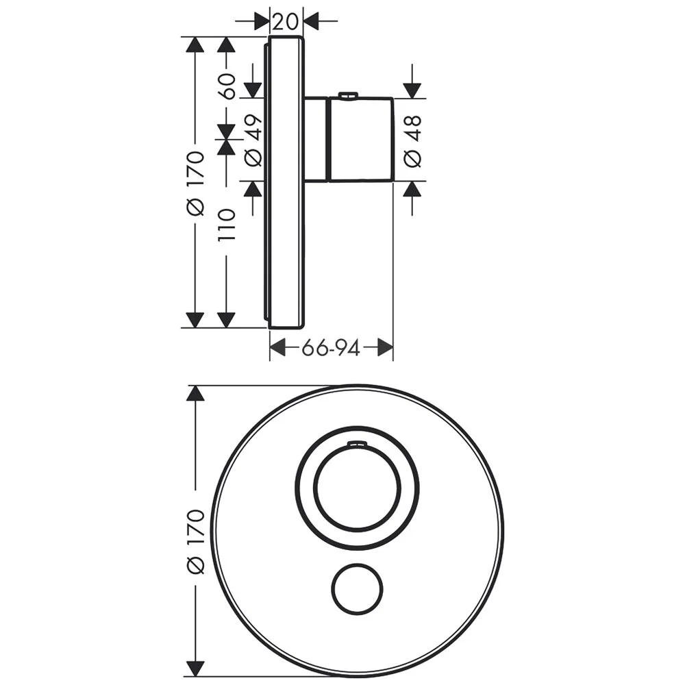 AXOR ShowerSelect Round Thermostat Highflow für 1 Verbraucher und 1 zusätzlichen Abgang