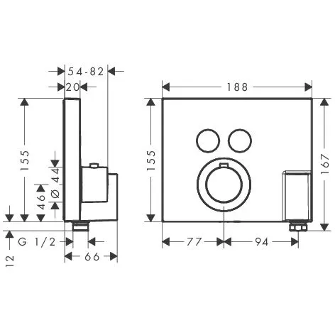 AXOR ShowerSelect Square Thermostat für 2 Verbraucher mit FixFit und Porter
