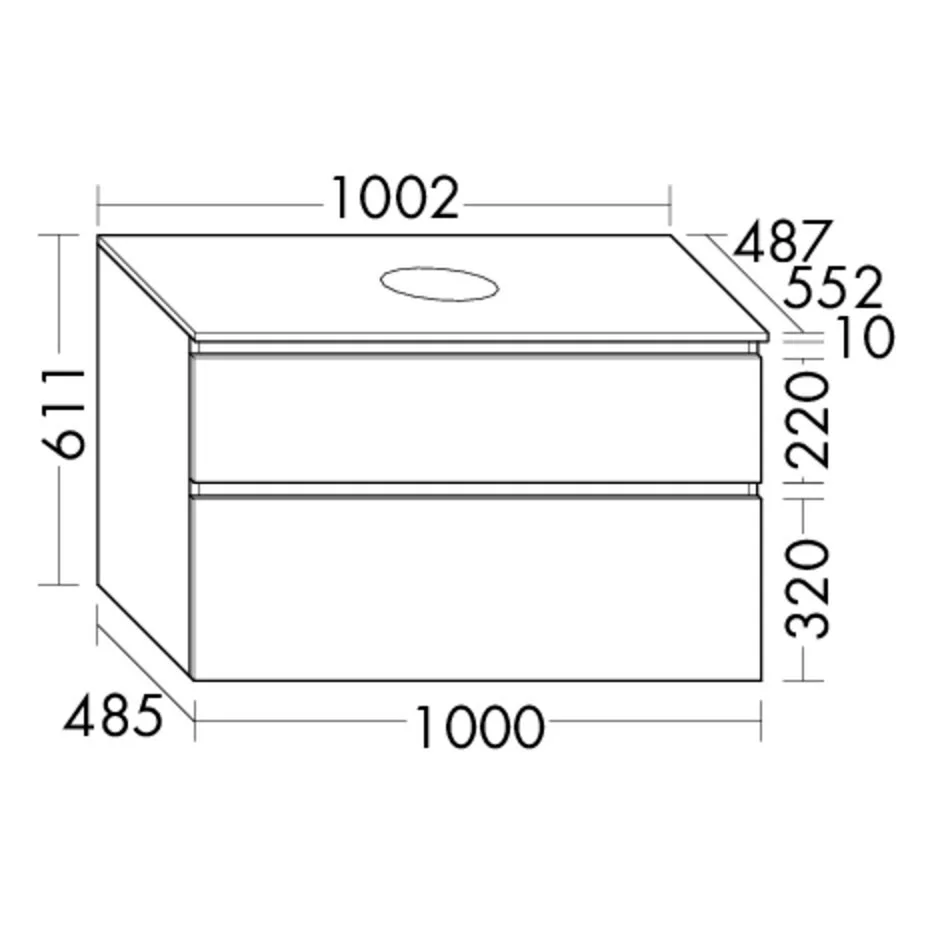 burgbad Lin20 Waschtischunterschrank mit Konsolenplatte 100 cm, 2 Auszüge, Beckenausschnitt mittig