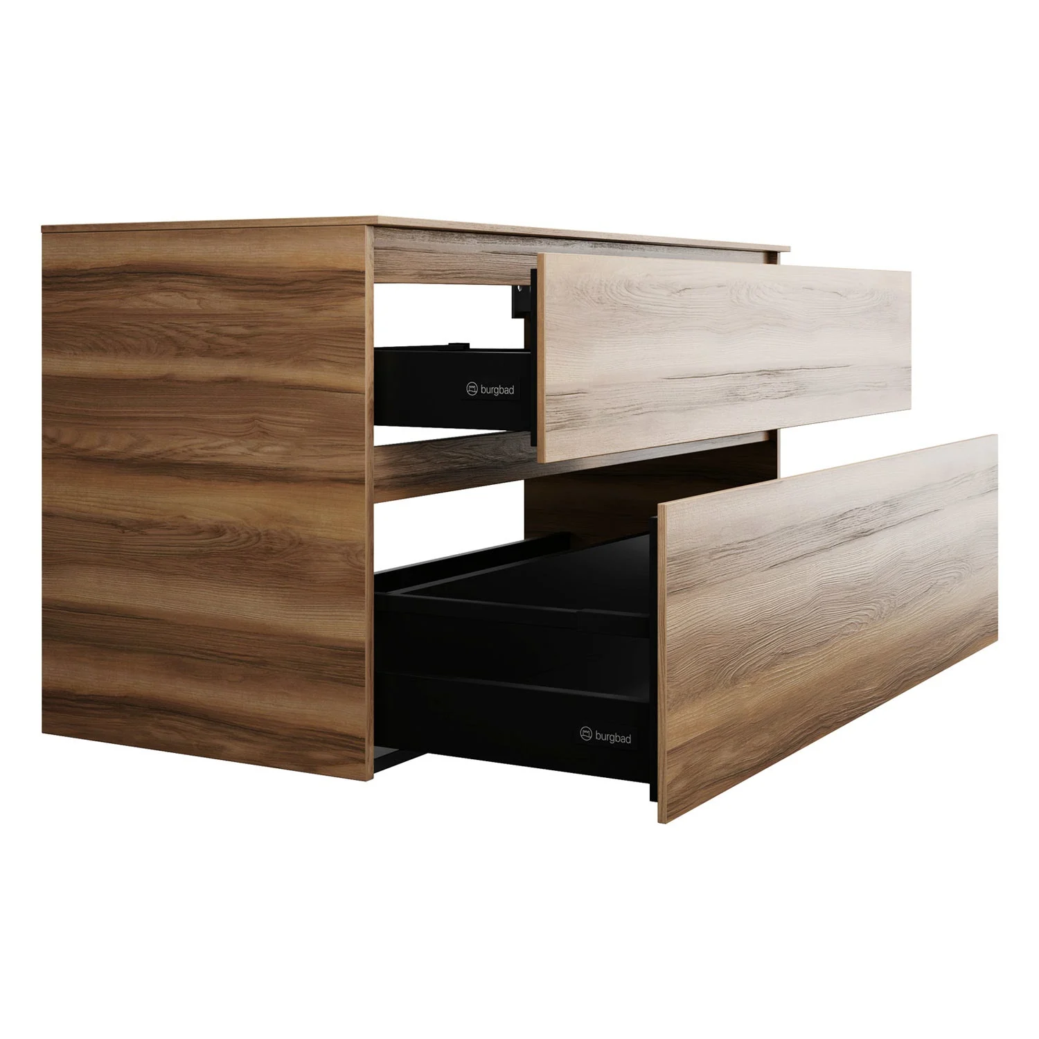 burgbad Lin20 Waschtischunterschrank mit Konsolenplatte 120 cm, 2 Auszüge, Beckenausschnitt mittig