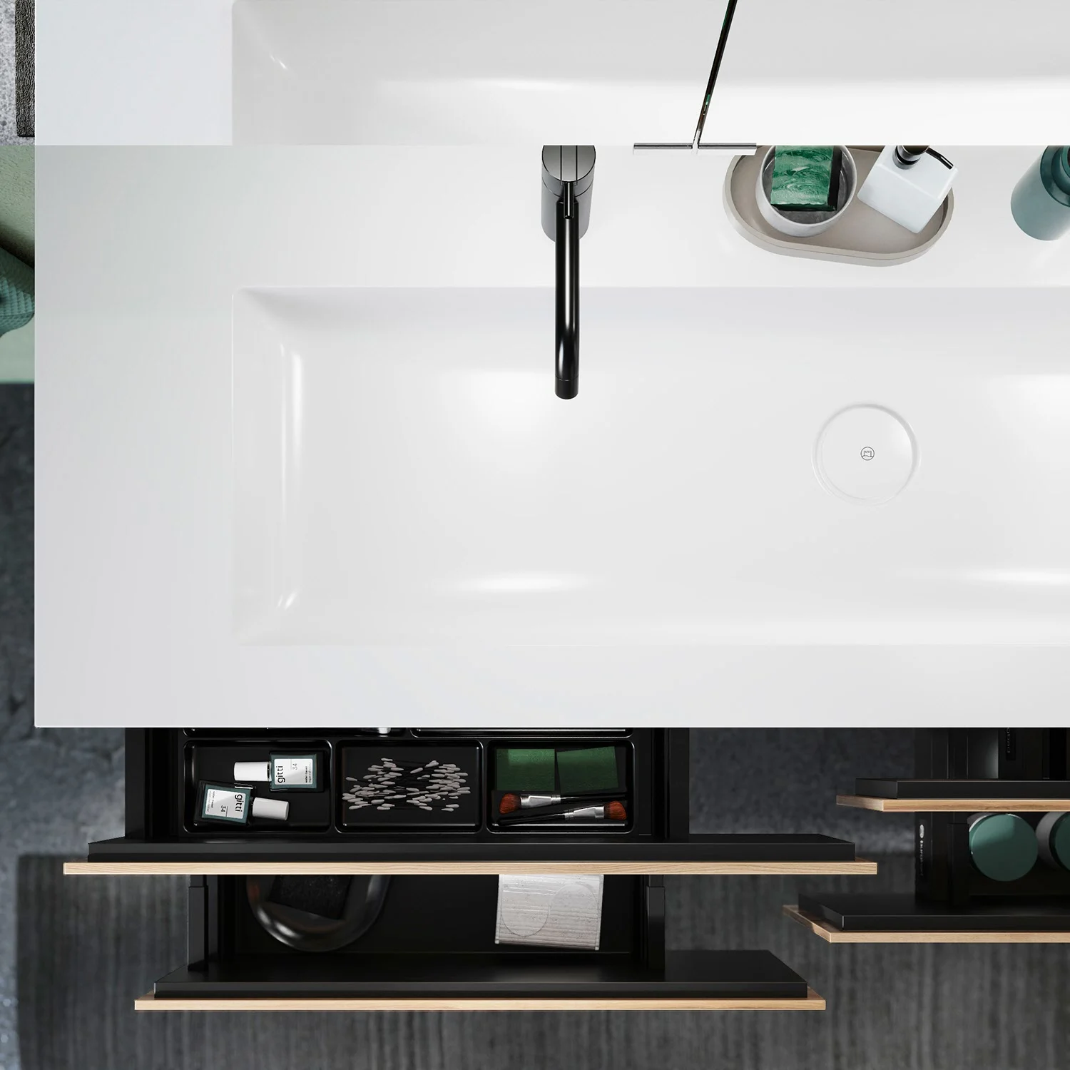 burgbad Lin20 Waschtischunterschrank mit Mineralguss-Waschtisch 142 cm, 4 Auszüge