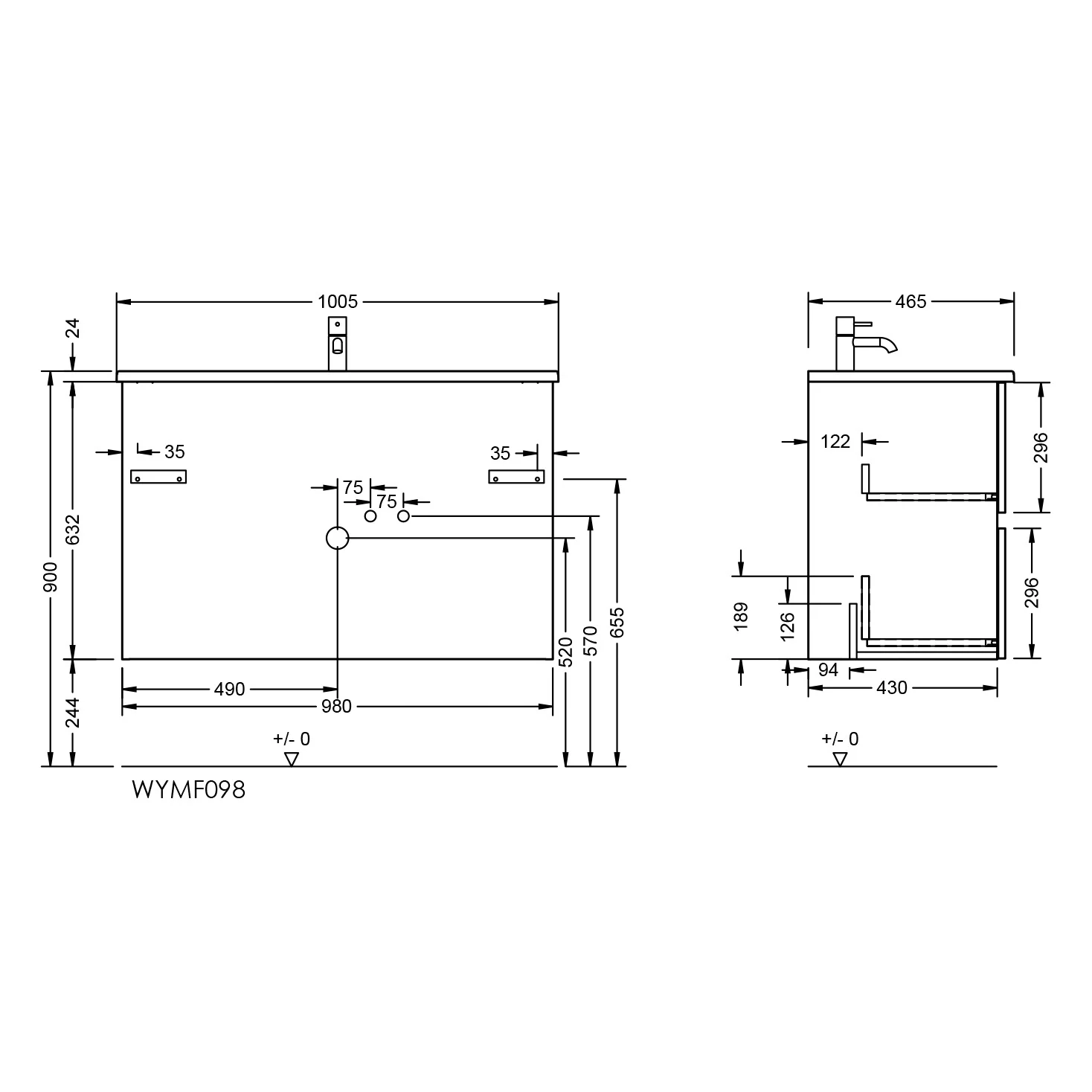 burgbad Liniq Waschtisch mit Unterschrank 100,5 cm