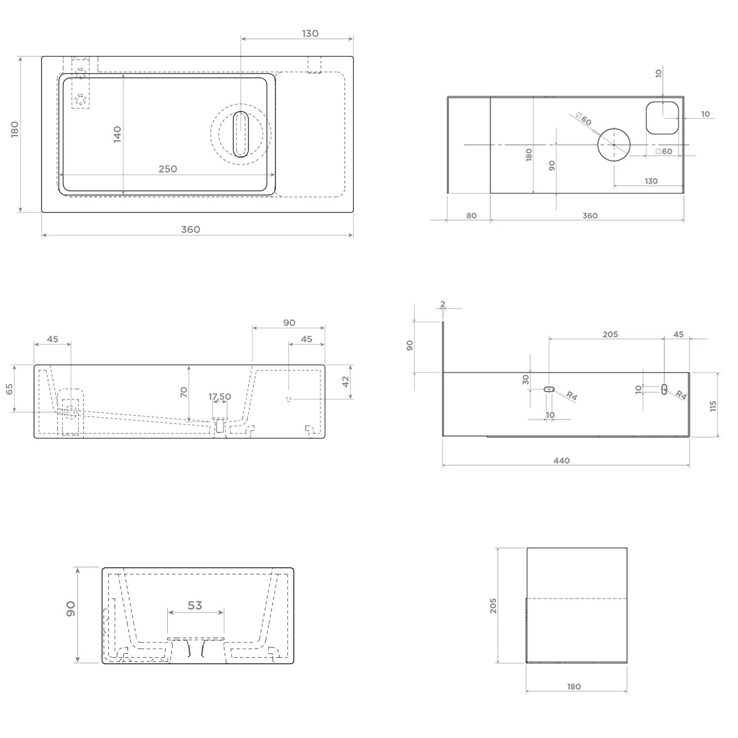 Hinweis: Ecorazzo ist ein nachhaltiger und umweltfreundlicher Werkstoff, der aus einer Mischung von Naturfasern, pflanzlichen Bindemitteln und rezykliertem PE hergestellt wird. Er ist mit handelsüblichen Werkzeugen bearbeitbar, sodass bei Bedarf ein Hahnloch bauseits gebohrt werden kann.