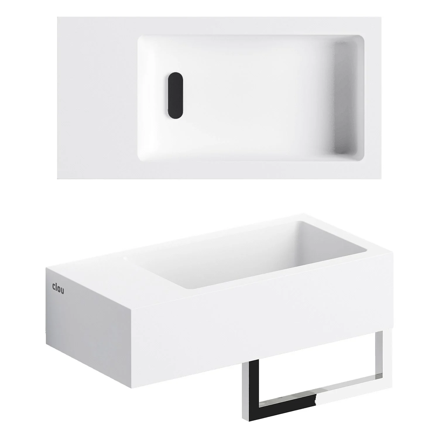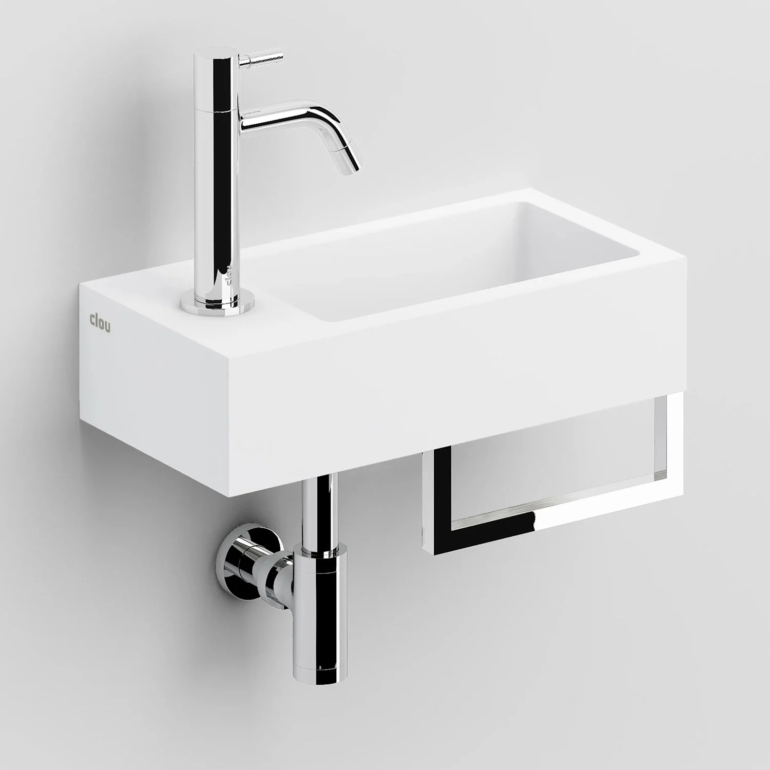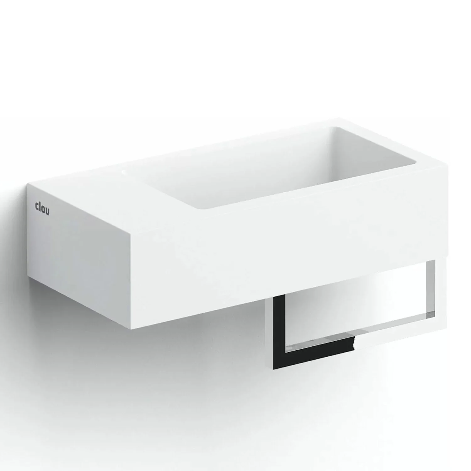 Clou Flush 3 Left Aluite-Handwaschbecken 36 x 18 cm mit vorgestochenem Hahnloch links und Handtuchhalter