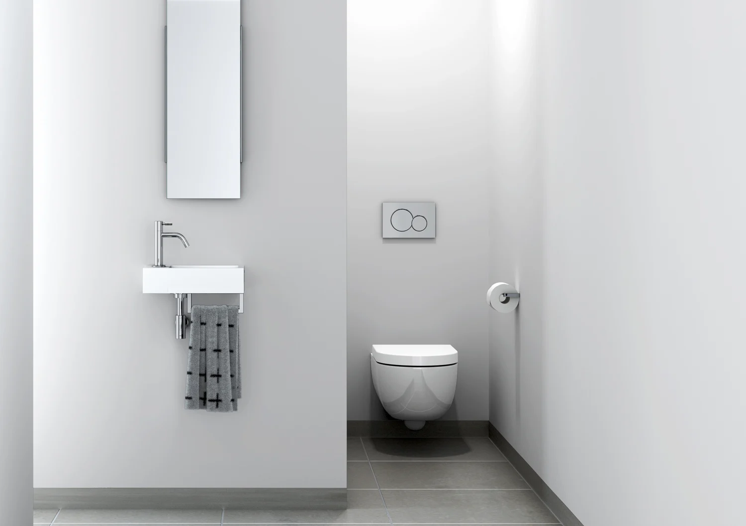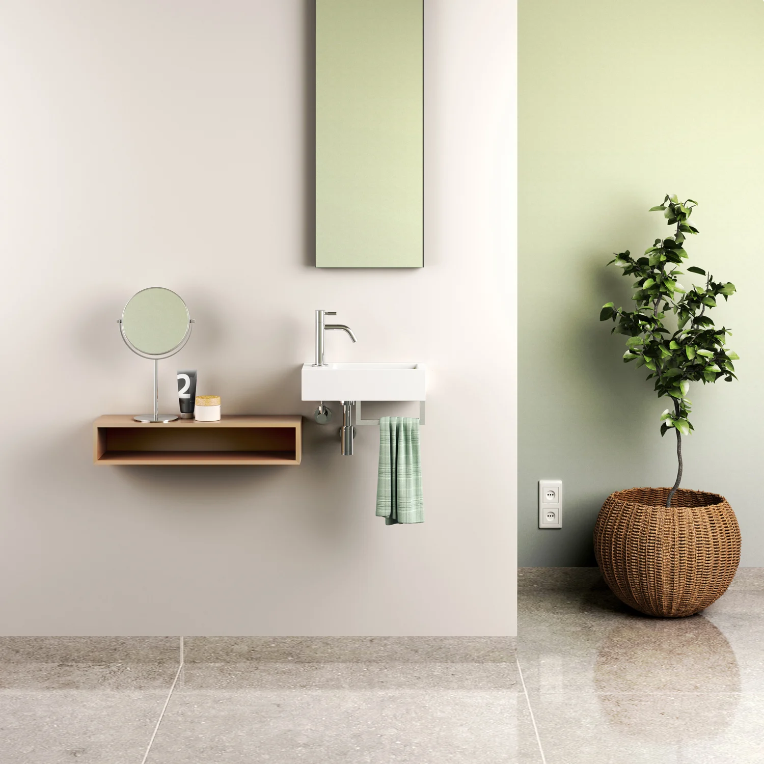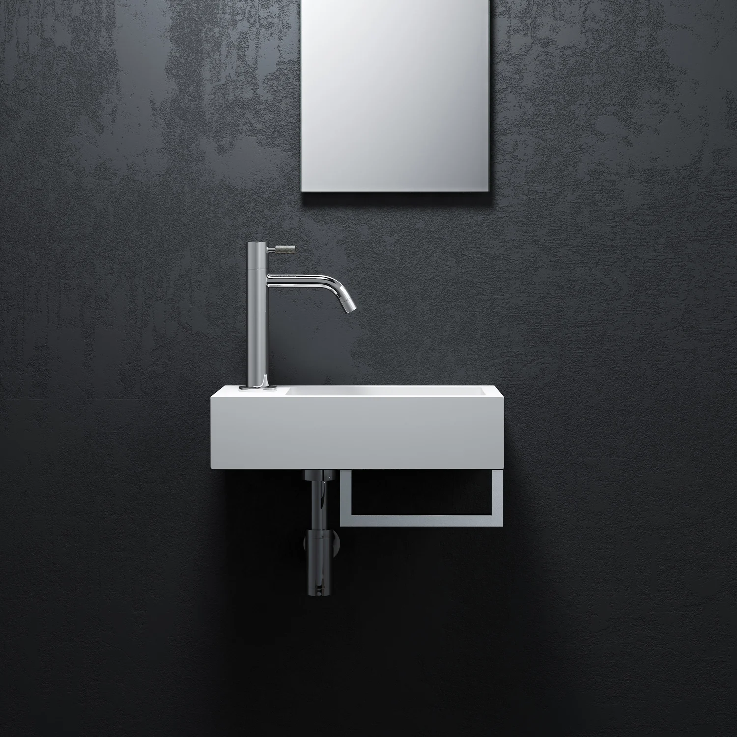 Clou Flush 3 Left Aluite-Handwaschbecken 36 x 18 cm mit vorgestochenem Hahnloch links und Handtuchhalter