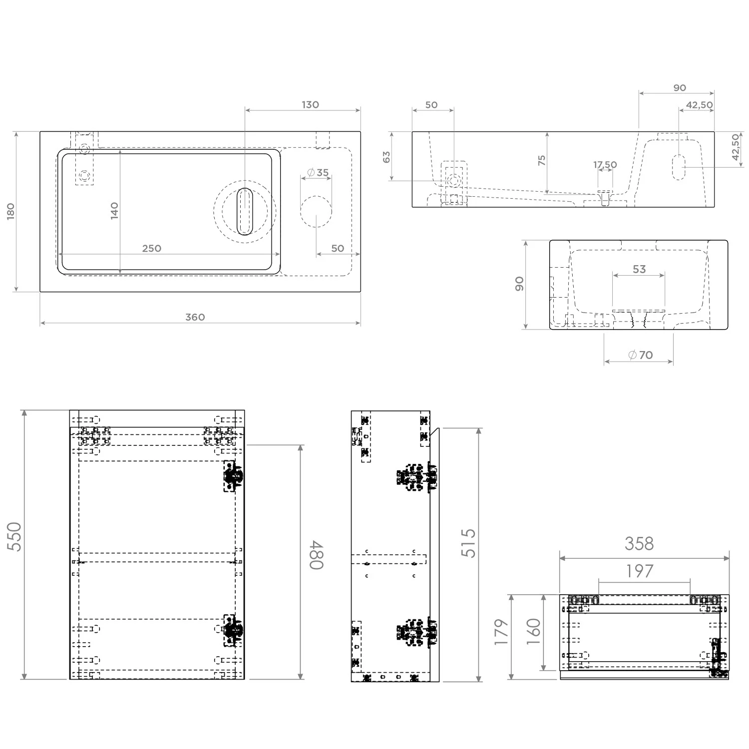 Clou Flush 3 Right Aluite - Handwaschbecken 36 cm mit Unterschrank