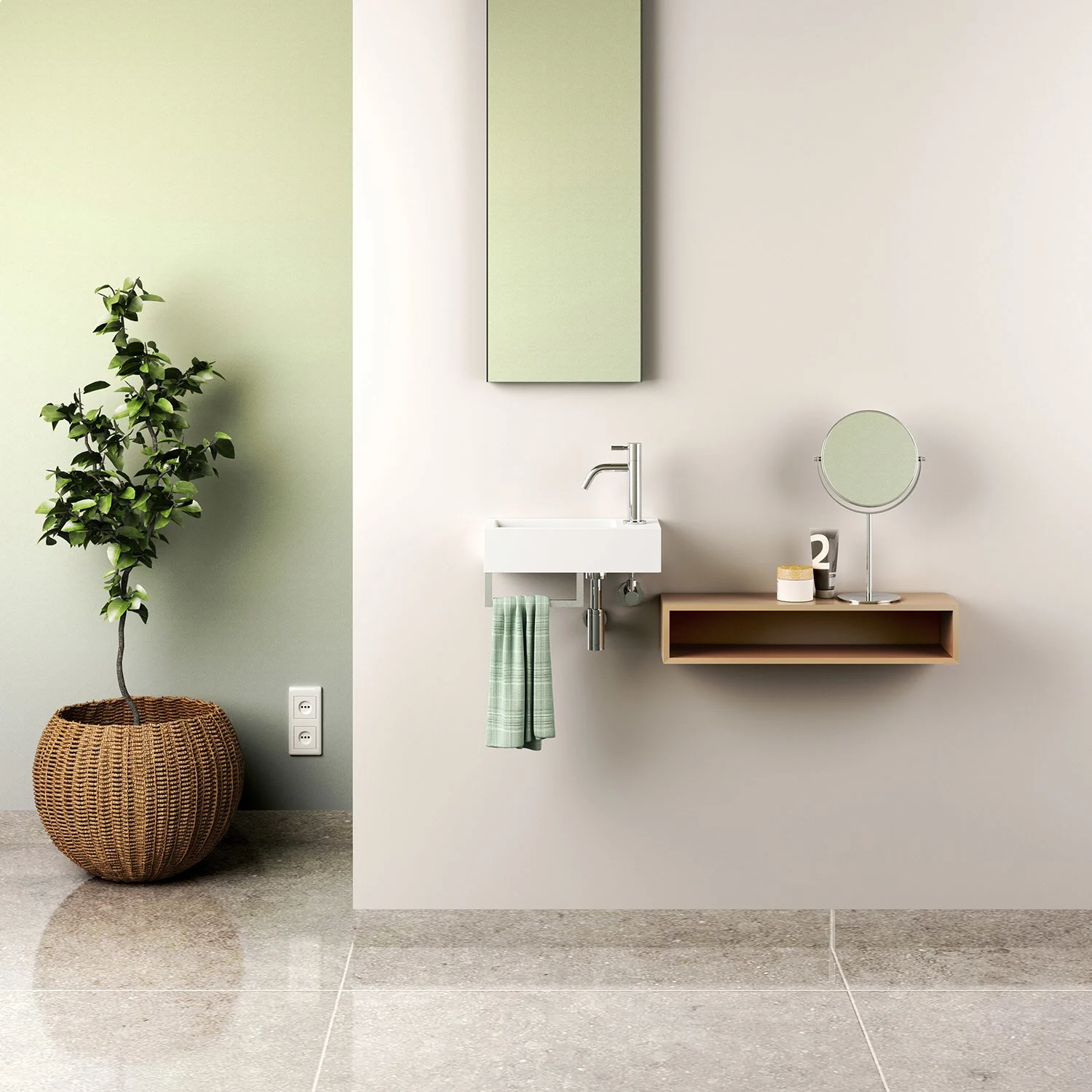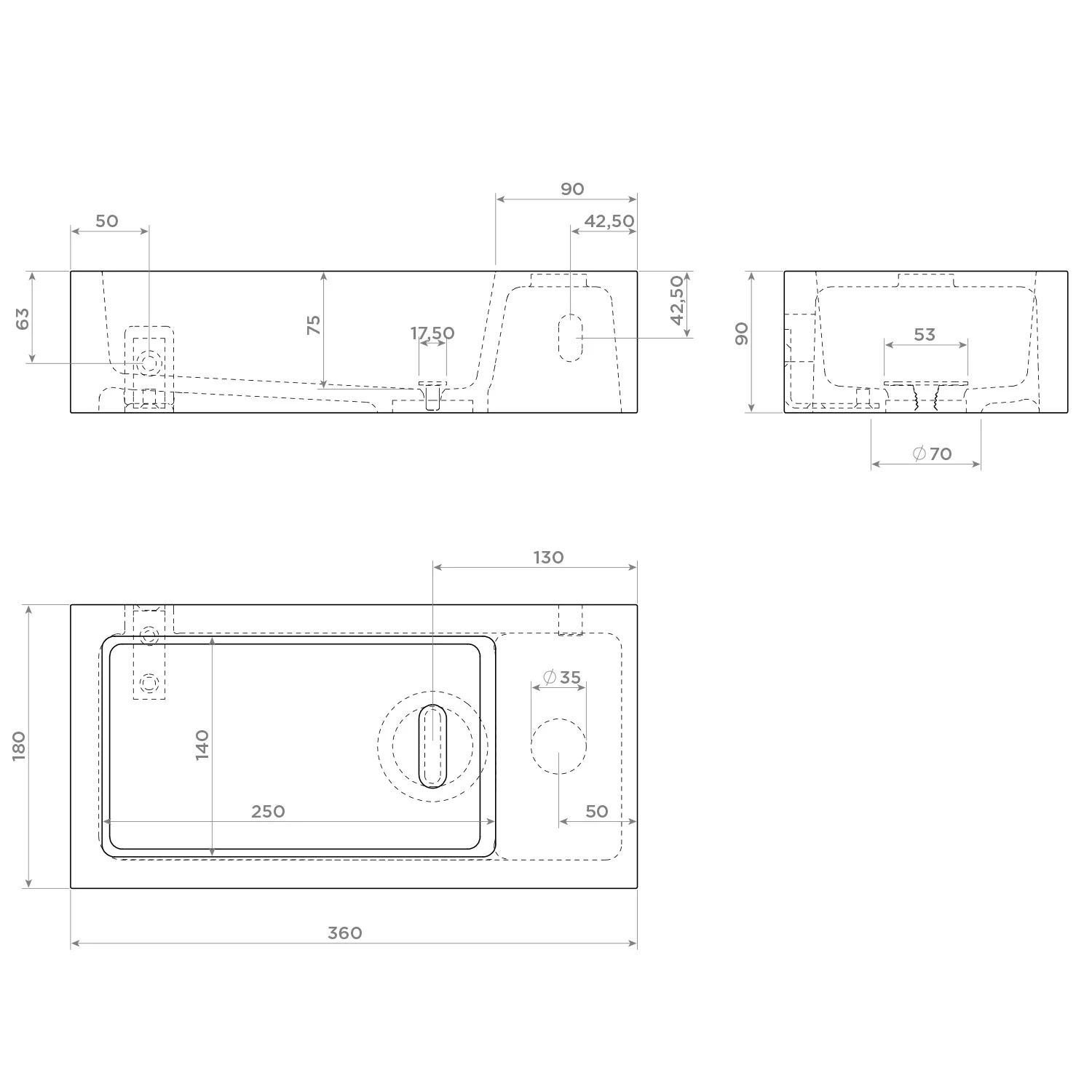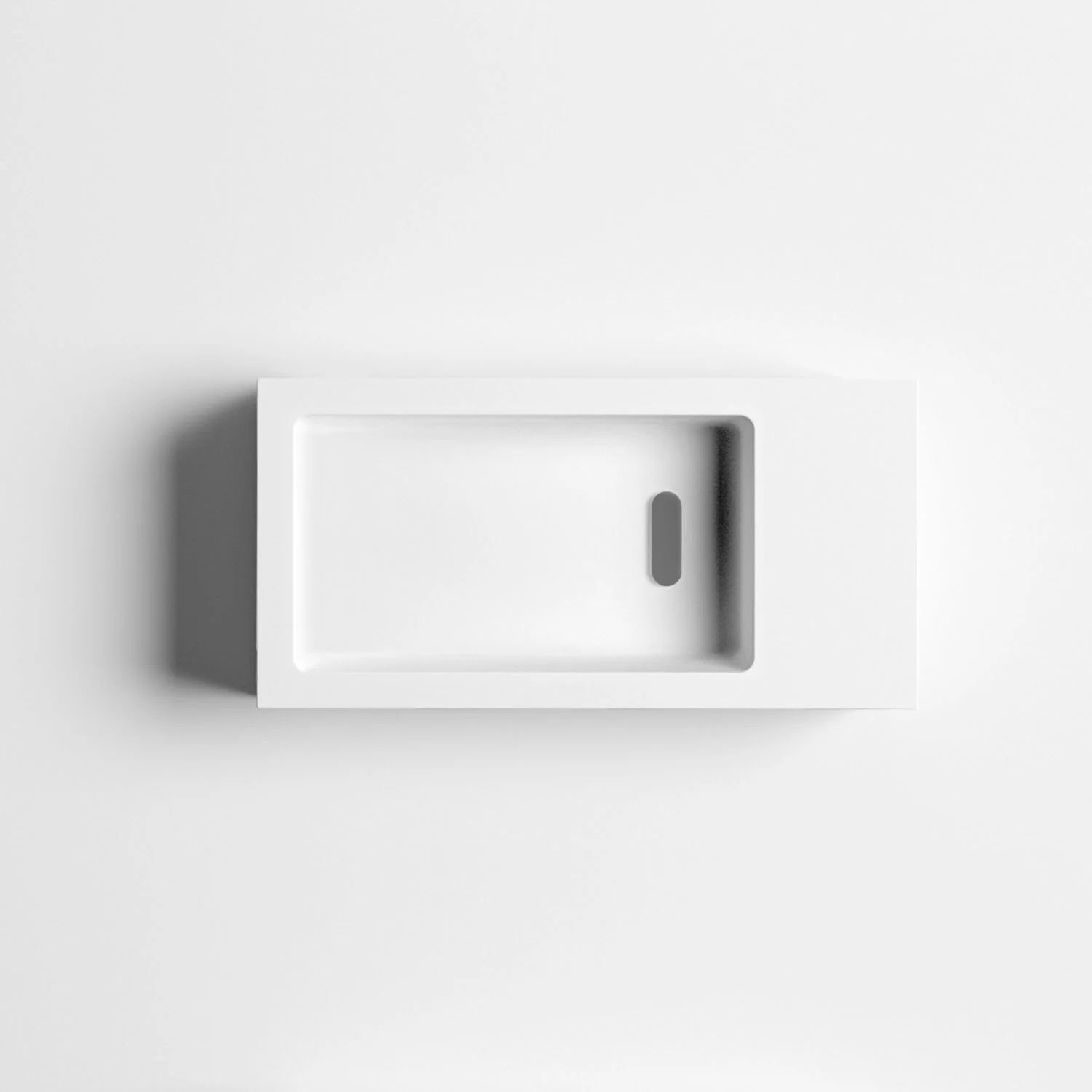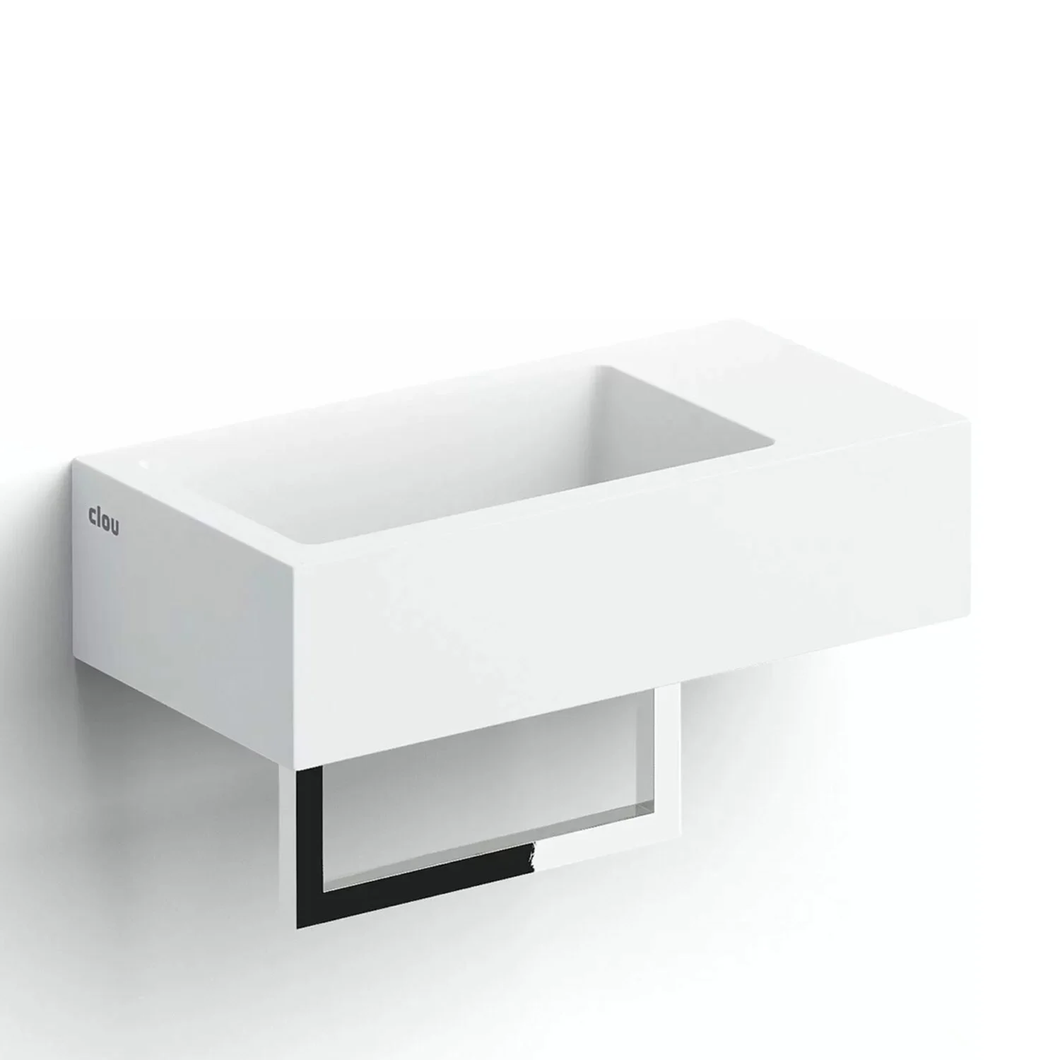 Clou Flush 3 Right Aluite-Handwaschbecken 36 x 18 cm mit vorgestochenem Hahnloch rechts und Handtuchhalter