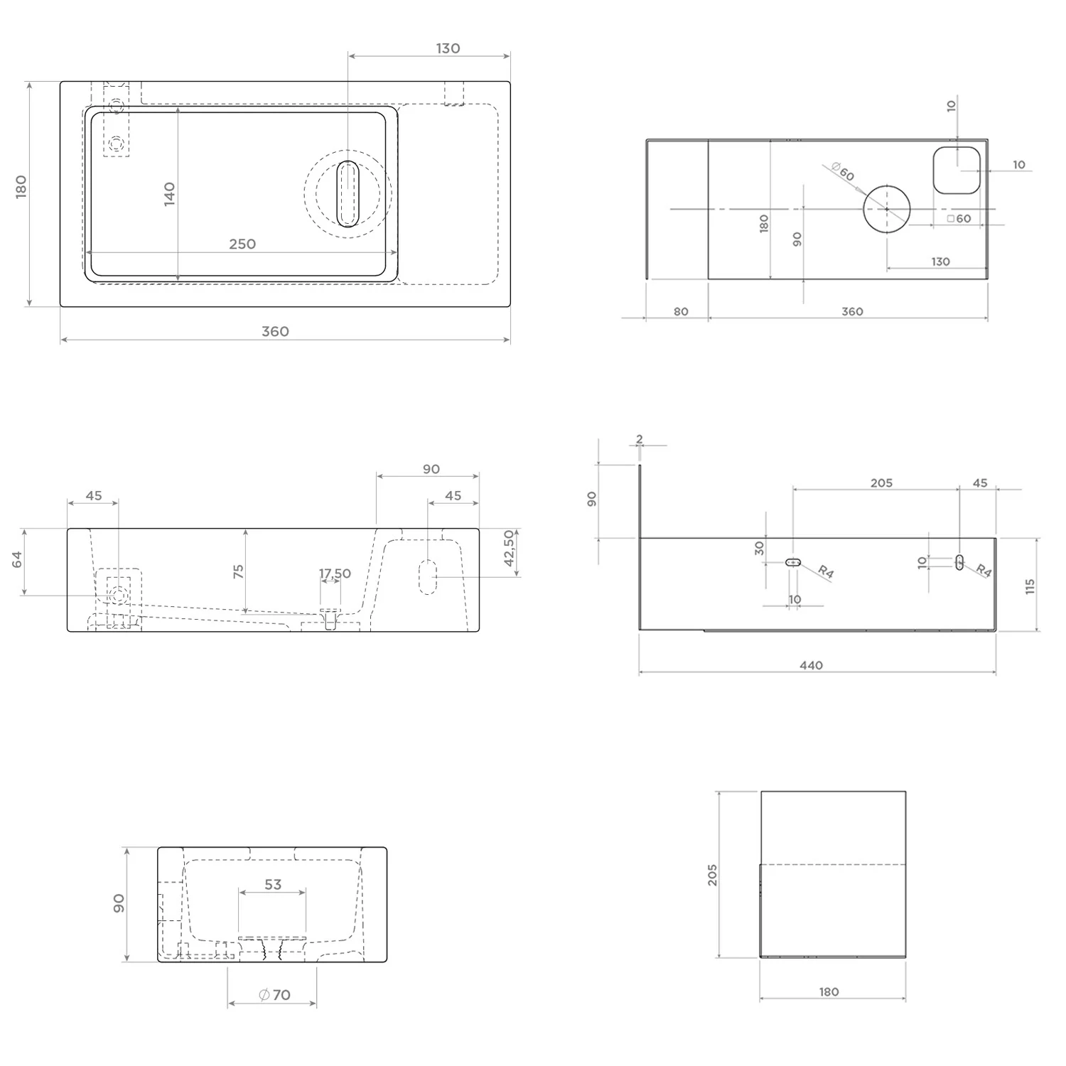 Clou Flush 3 Right Keramik - Handwaschbecken 36 cm mit offenem Unterschrank