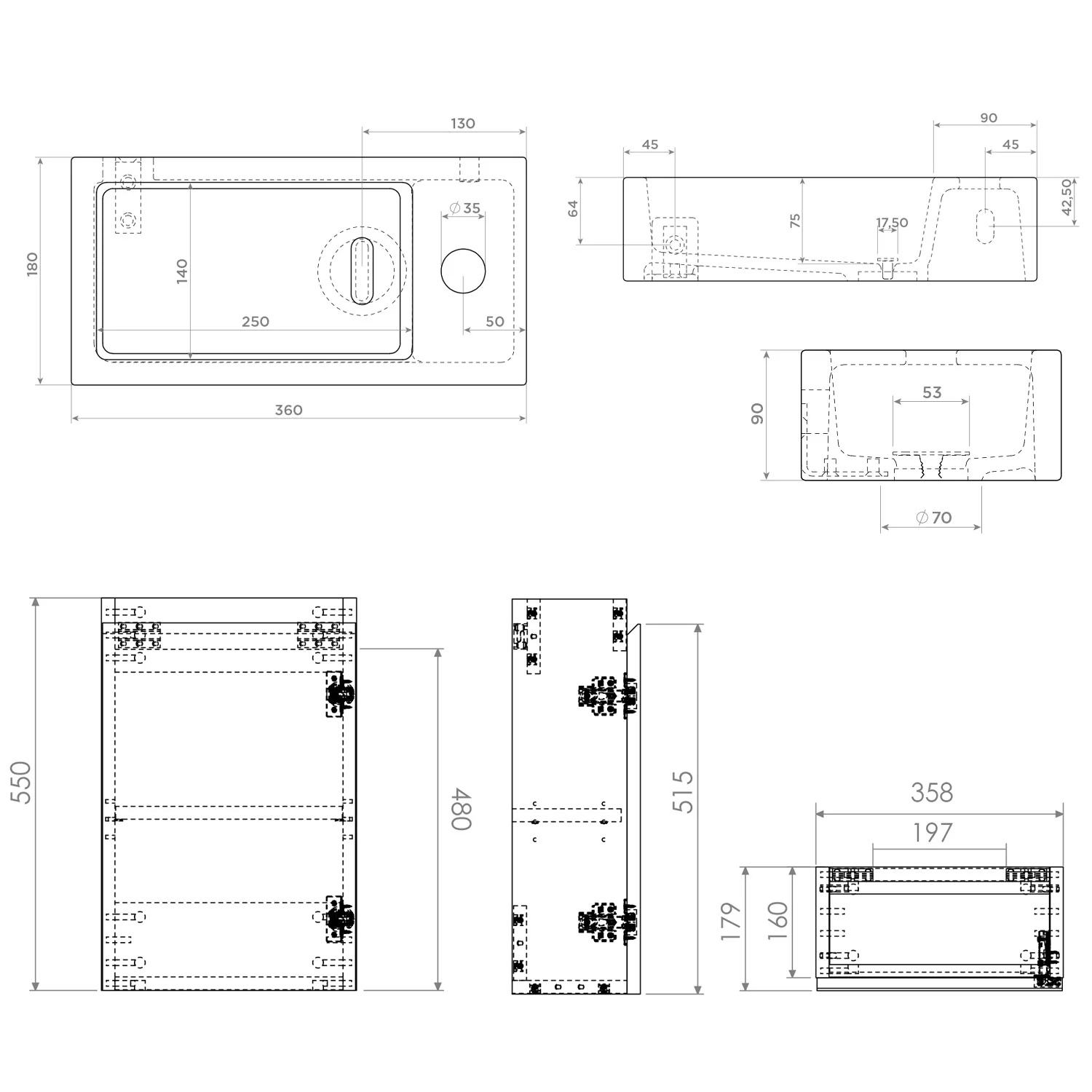 Clou Flush 3 Right Keramik - Handwaschbecken 36 cm mit Unterschrank