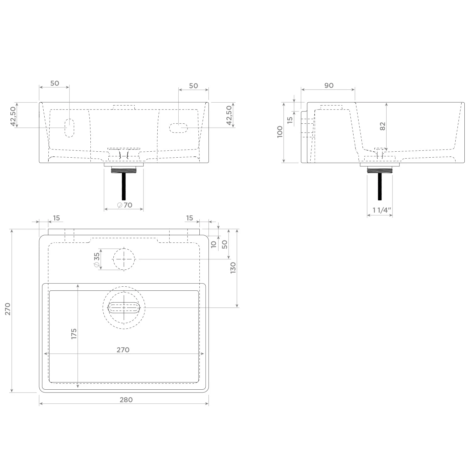 Clou New Flush 1 Aluite-Handwaschbecken 28 x 27 cm mit vorgestochenem Hahnloch