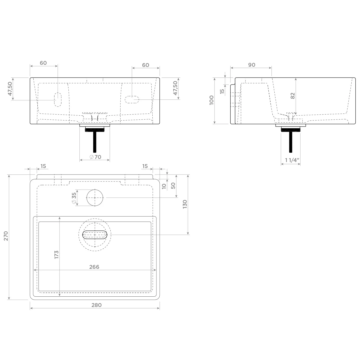 Clou New Flush 1 Keramik-Handwaschbecken 28 x 27 cm mit Hahnloch