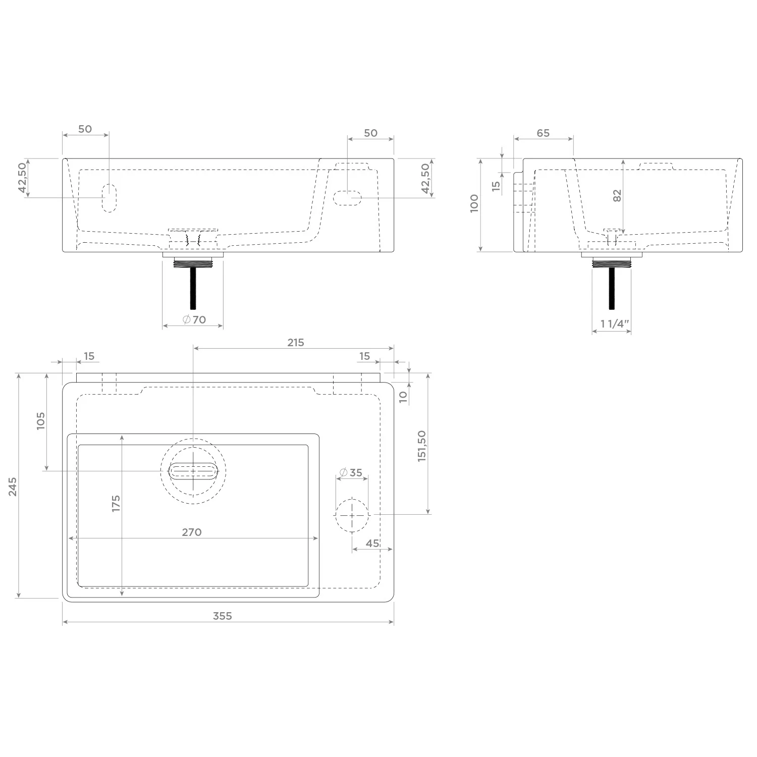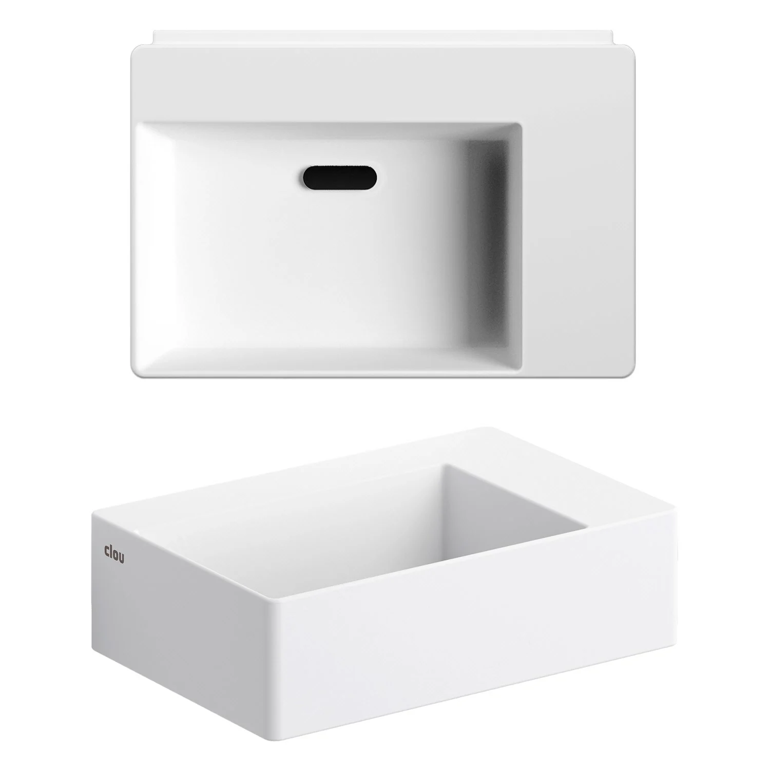 Clou New Flush 2 Aluite-Handwaschbecken 35,5 x 24,5 cm mit vorgestochenem Hahnloch rechts