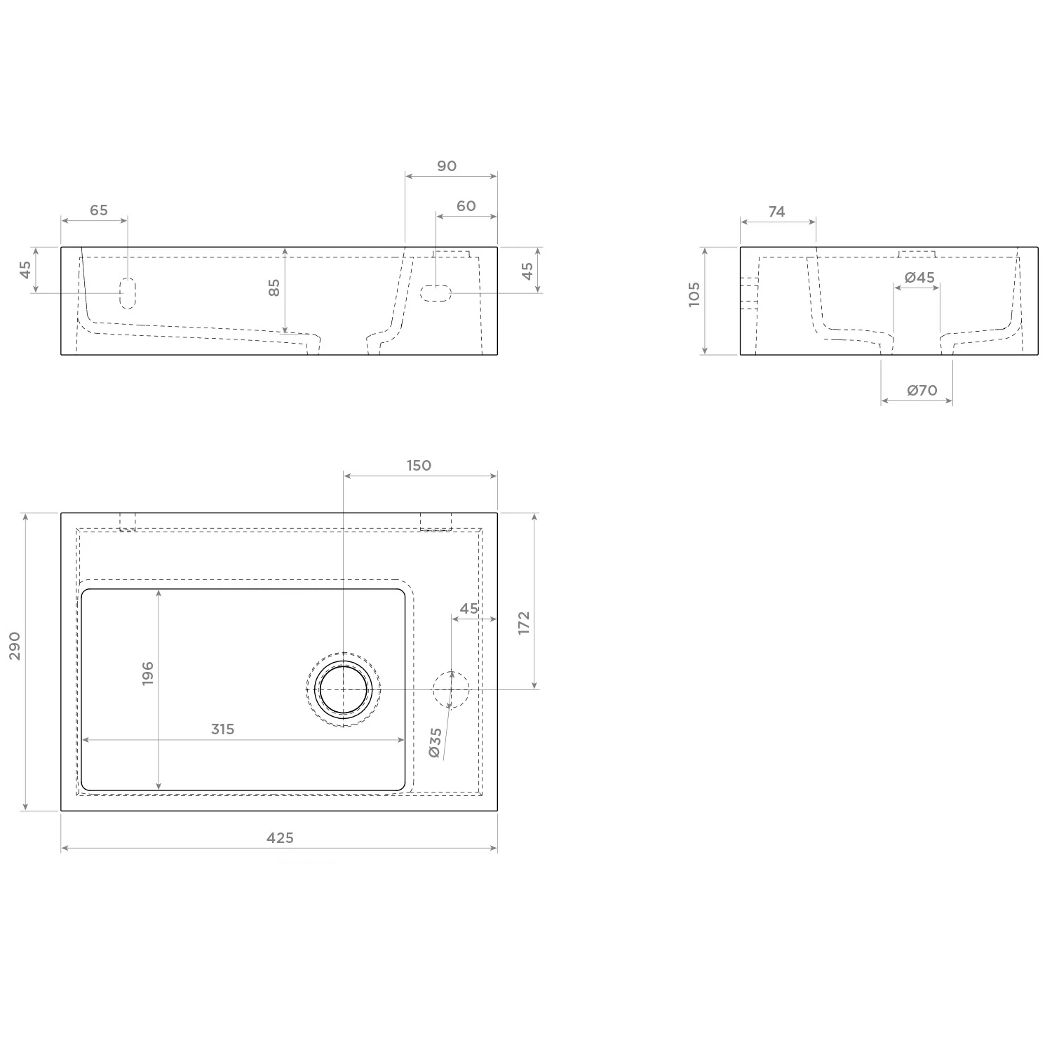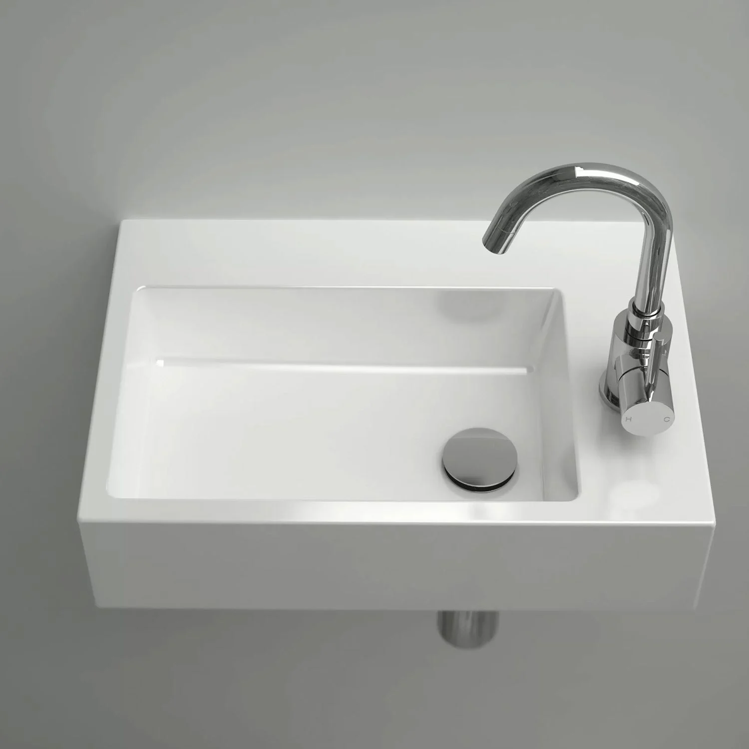 Clou New Flush 2 Plus Mineralmarmor-Handwaschbecken 42,5 x 29 cm mit vorgestochenem Hahnloch rechts