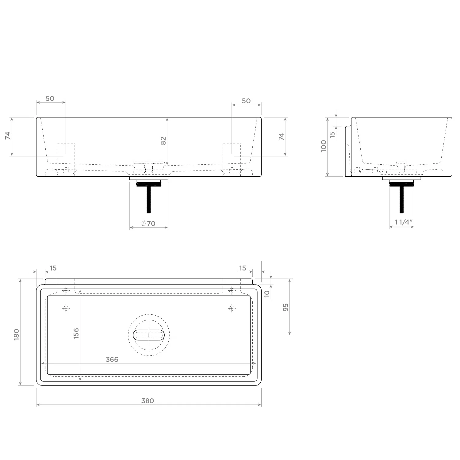 - Zum Lieferumfang gehört standardmäßig eine verchromte Ablaufgarnitur. Andere Farben müssen separat bestellt werden; siehe Zubehör.