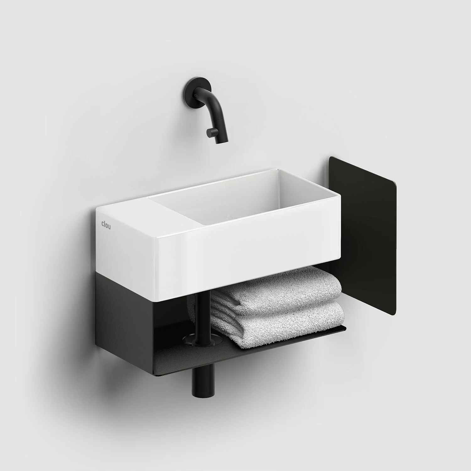 Clou New Flush 3 Left Aluite - Handwaschbecken 35 cm mit offenem Unterschrank