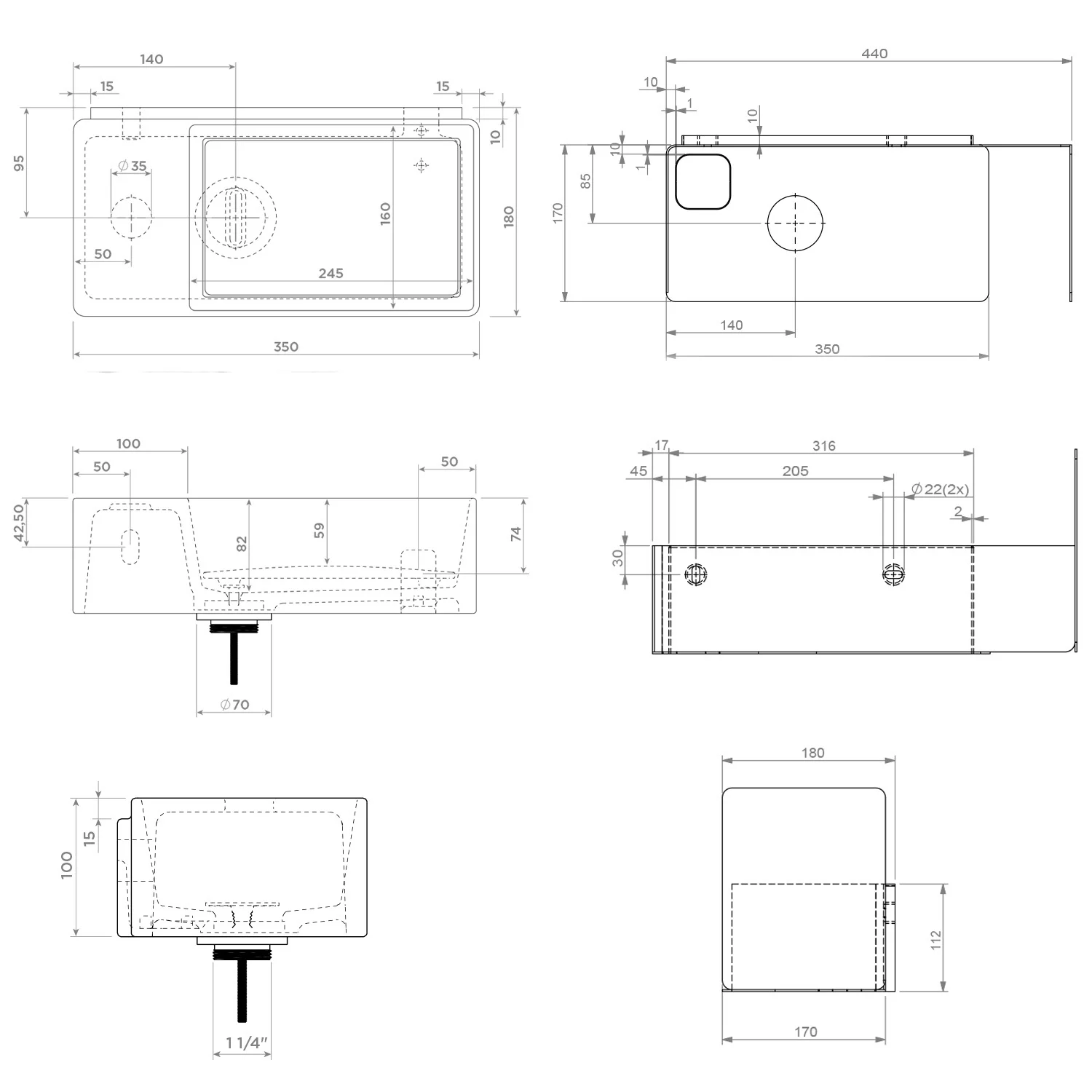 Clou New Flush 3 Left Aluite - Handwaschbecken 35 cm mit offenem Unterschrank