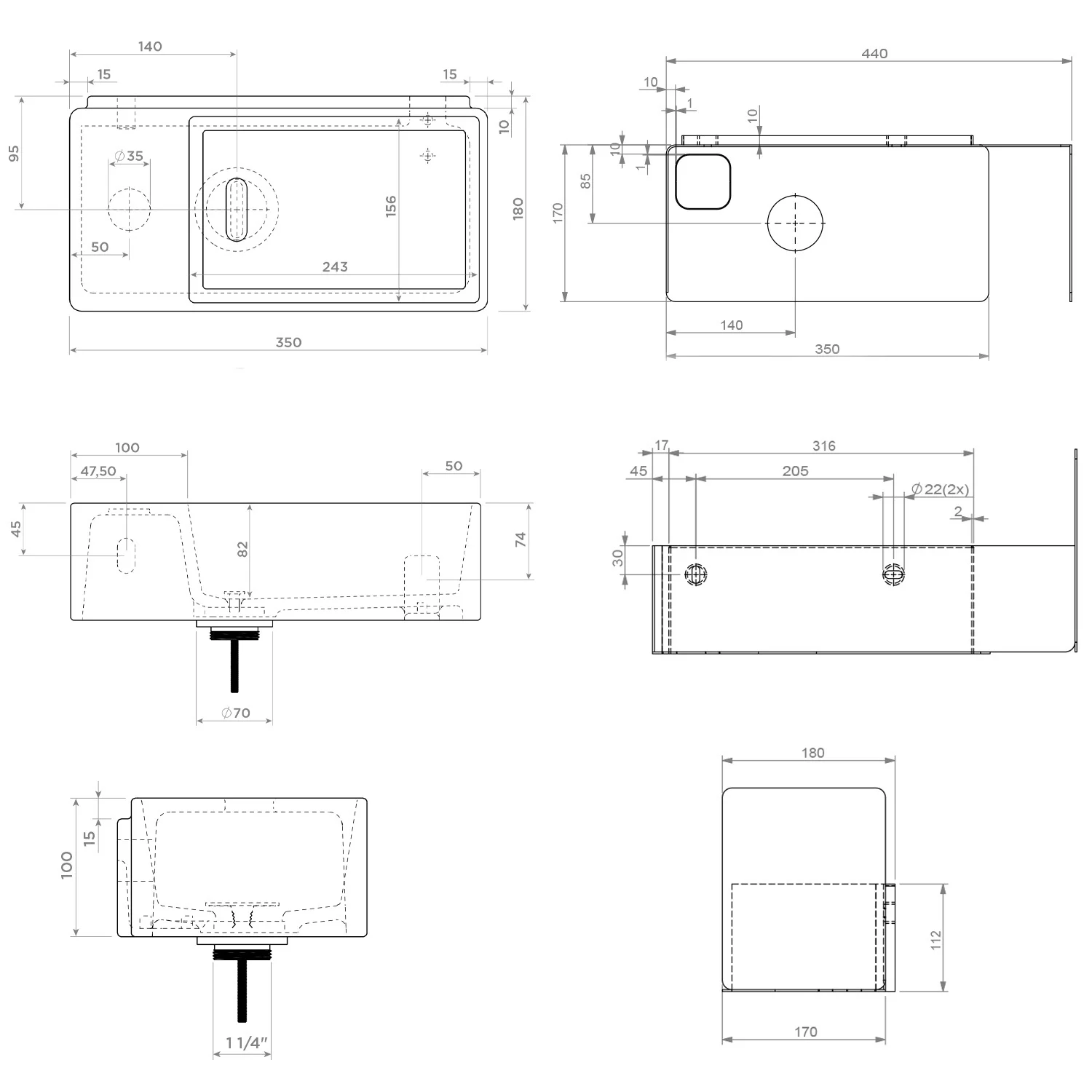 Clou New Flush 3 Left Keramik - Handwaschbecken 35 cm mit offenem Unterschrank