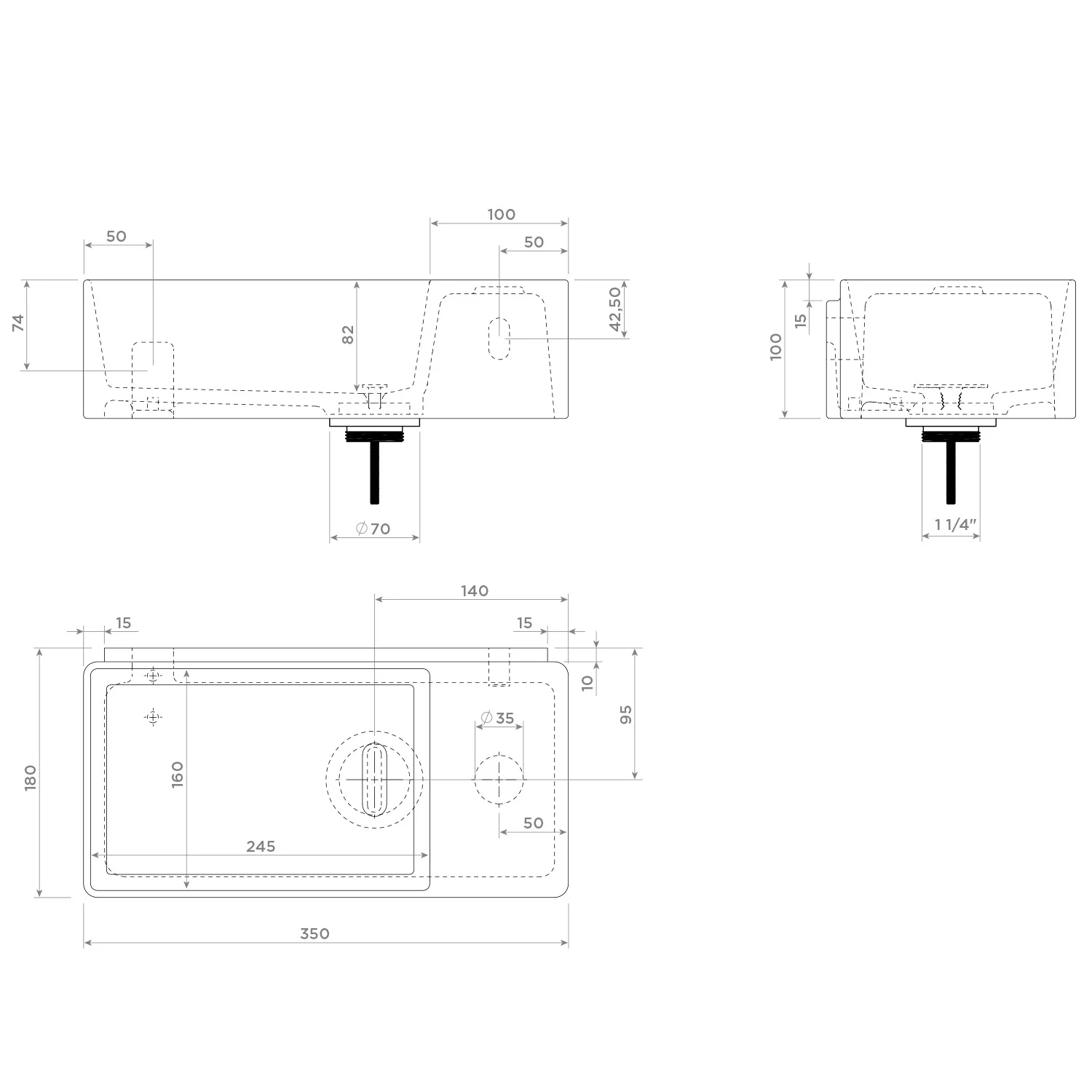 Clou New Flush 3 Right Aluite-Handwaschbecken 35 x 18 cm mit vorgestochenem Hahnloch rechts