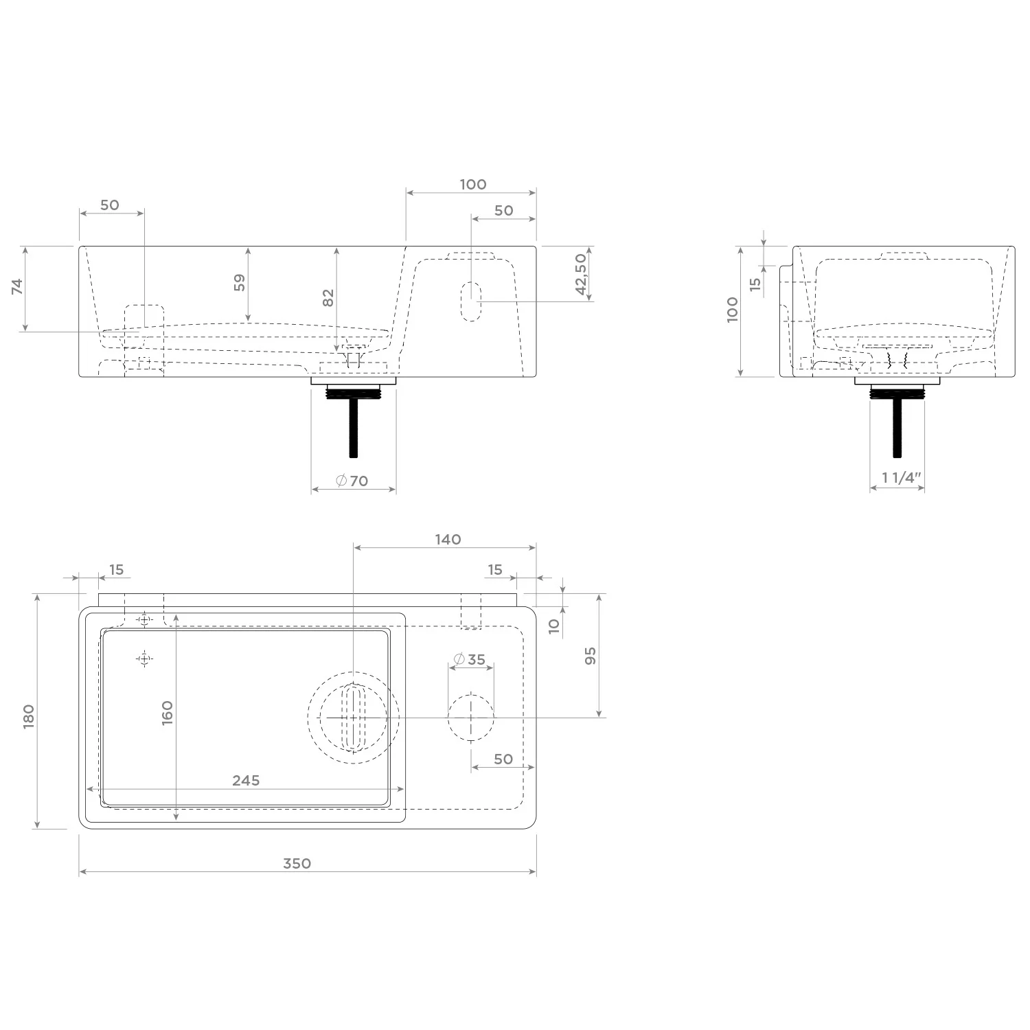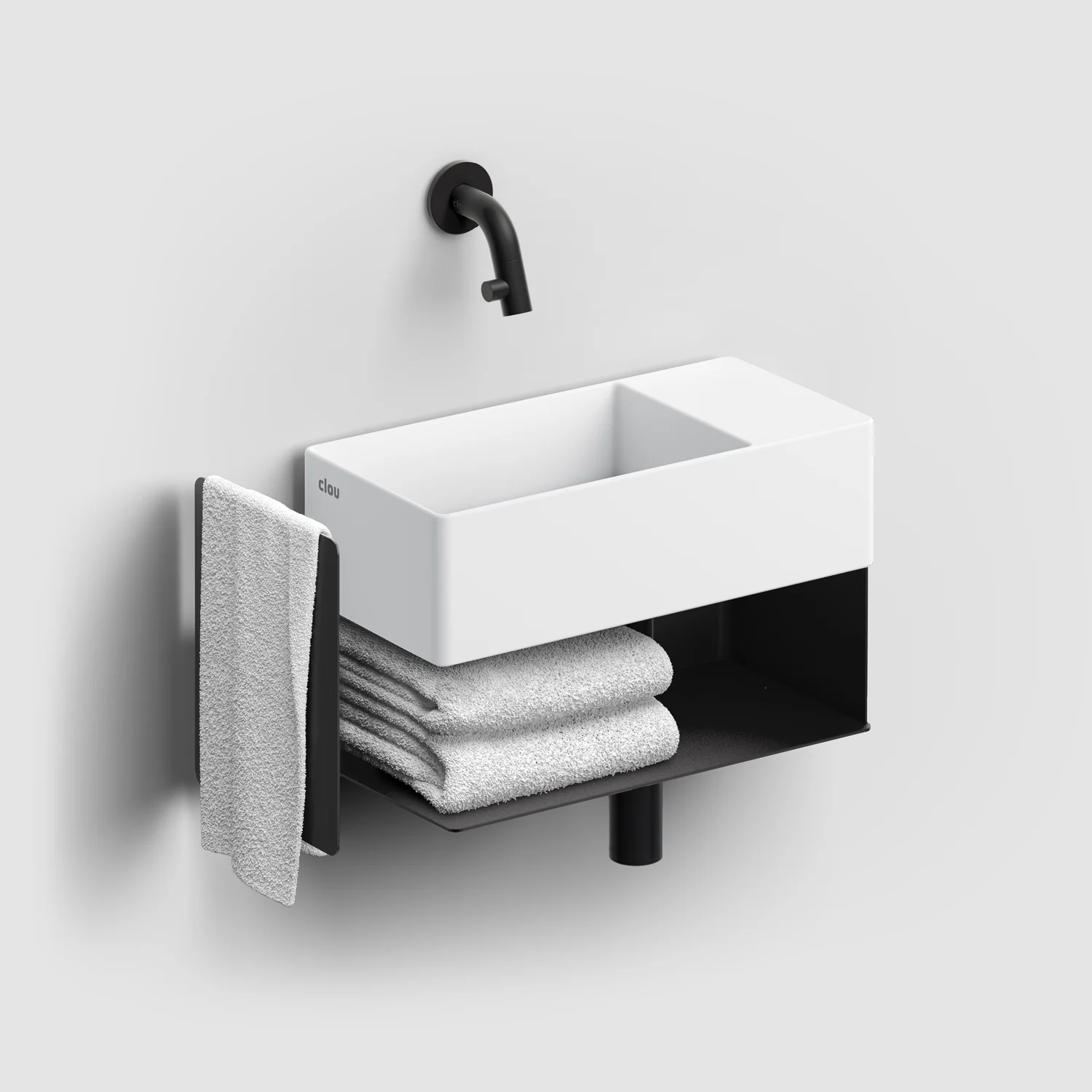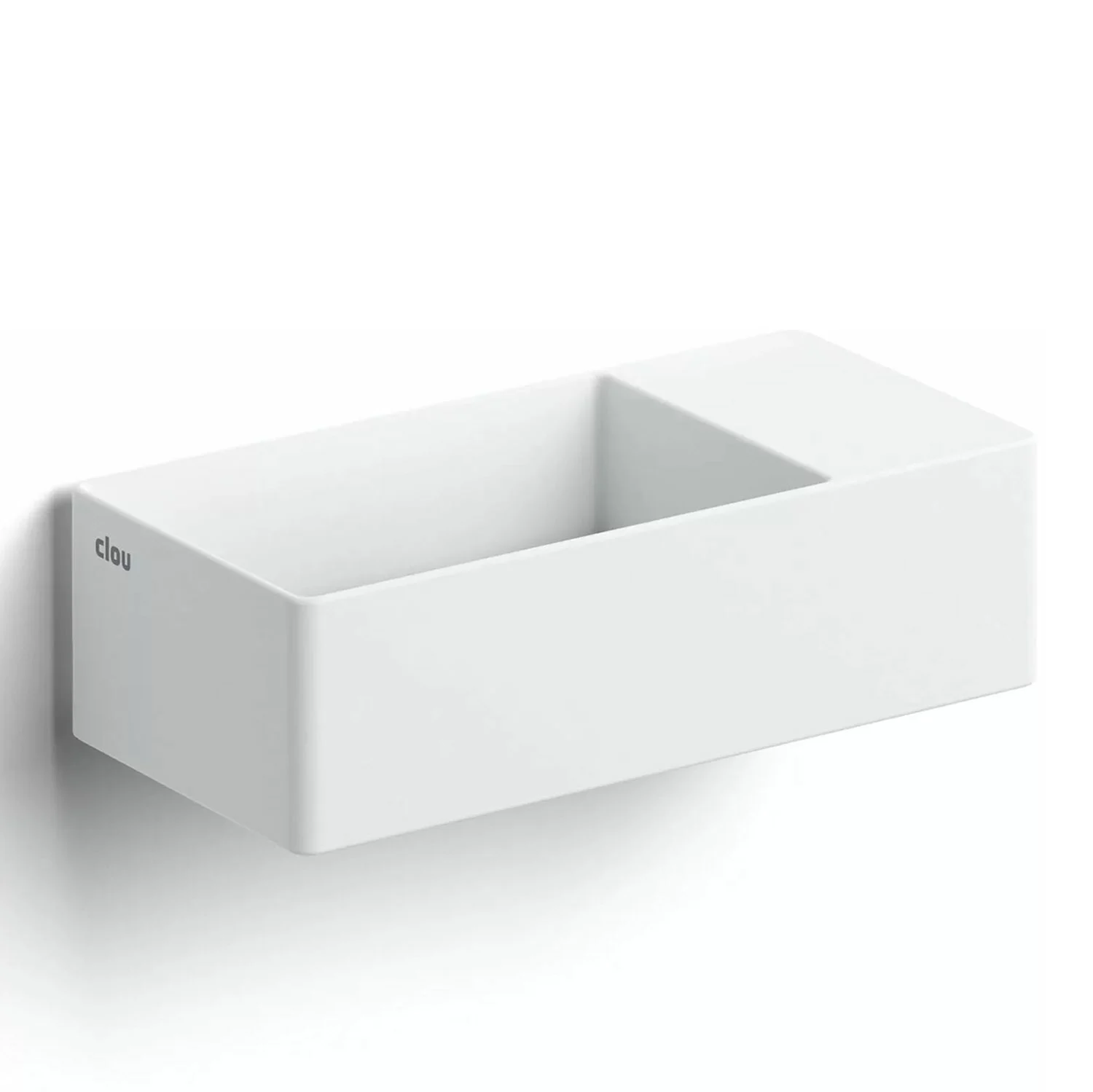 Clou New Flush 3 Right Aluite-Handwaschbecken 35 x 18 cm mit vorgestochenem Hahnloch rechts und Ablaufplatte