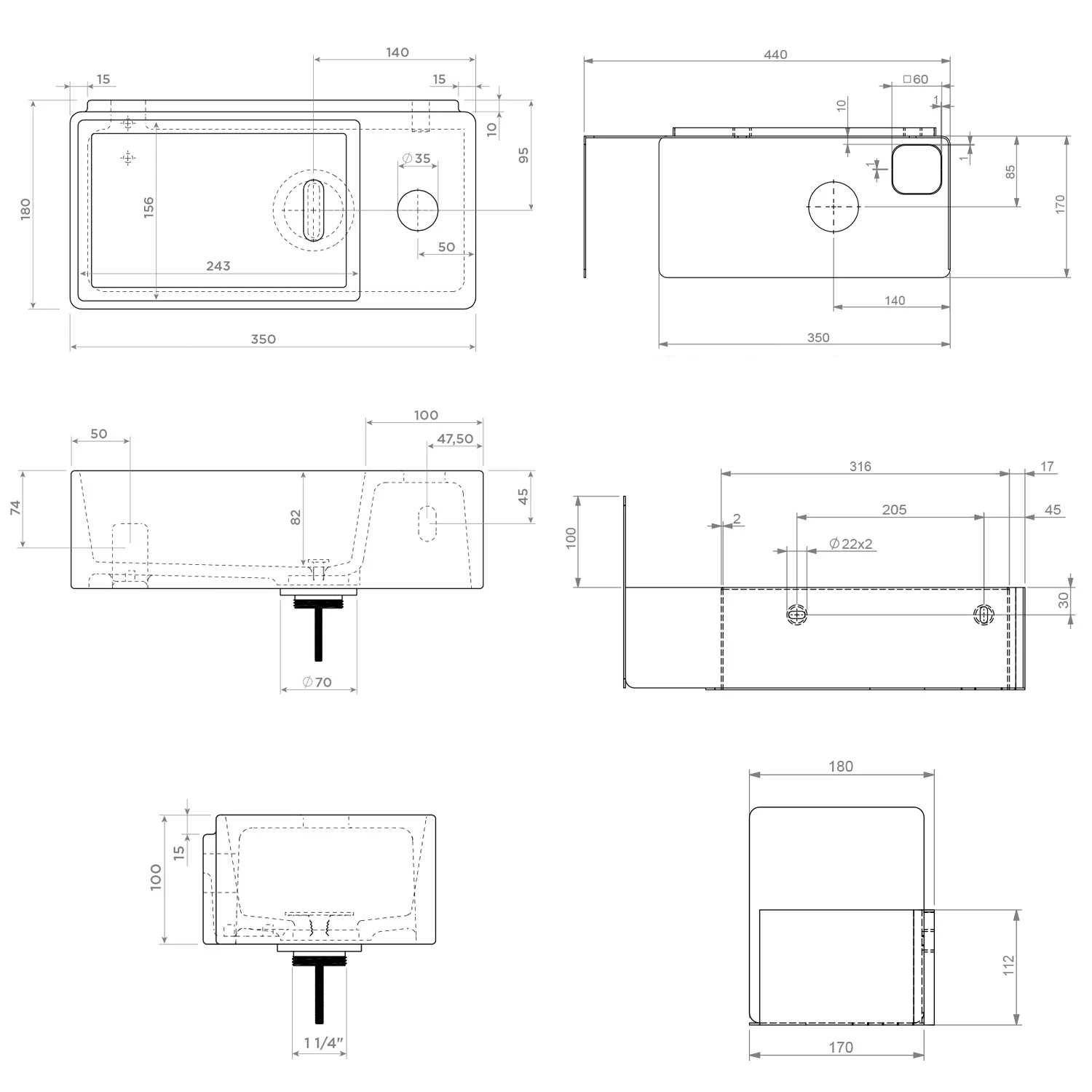 Clou New Flush 3 Right Keramik - Handwaschbecken 35 cm mit offenem Unterschrank