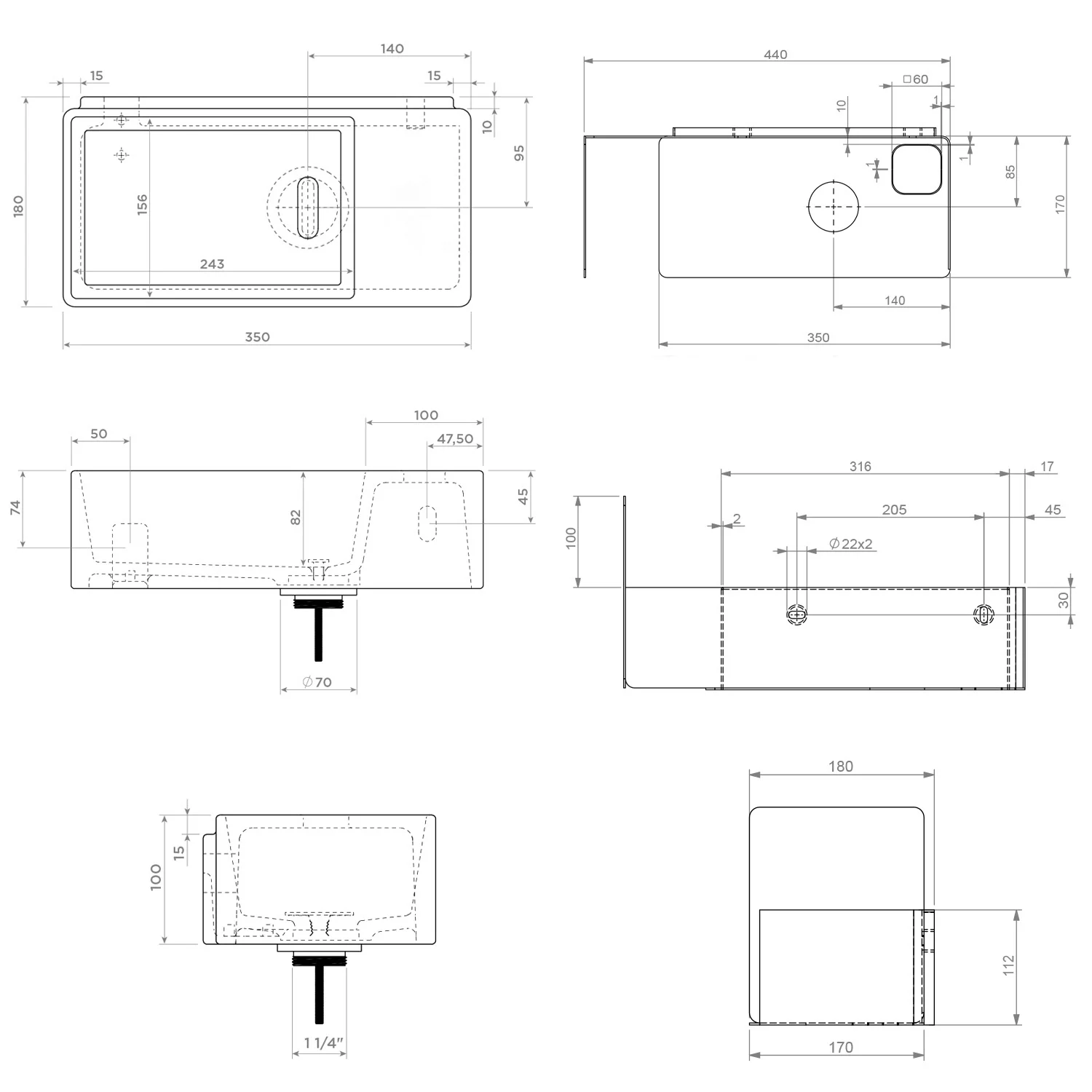 Clou New Flush 3 Right Keramik - Handwaschbecken 35 cm mit offenem Unterschrank