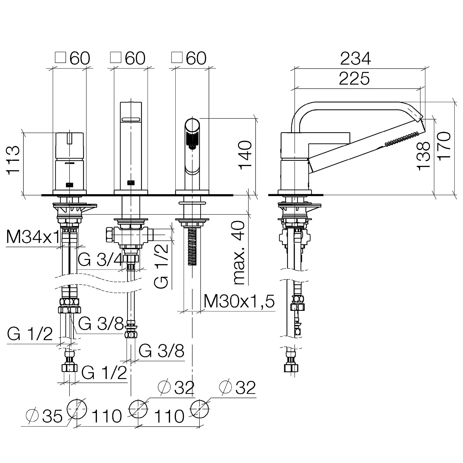- Bohrungsdurchmesser Schlauchbrausegarnitur 3,2 cm