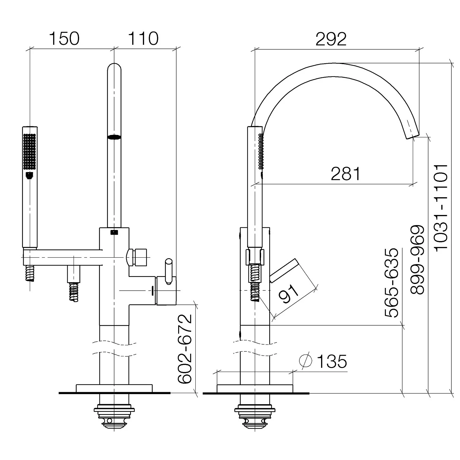 - Höhe bis Luftsprudler 89,9 - 96,9 cm
