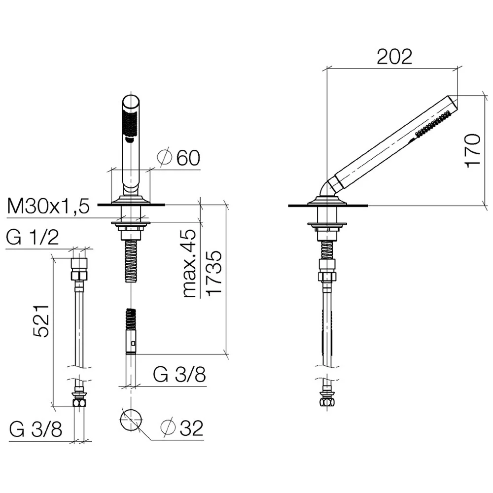Dornbracht VAIA Schlauchbrausegarnitur für Wannen- Fliesenrandmontage