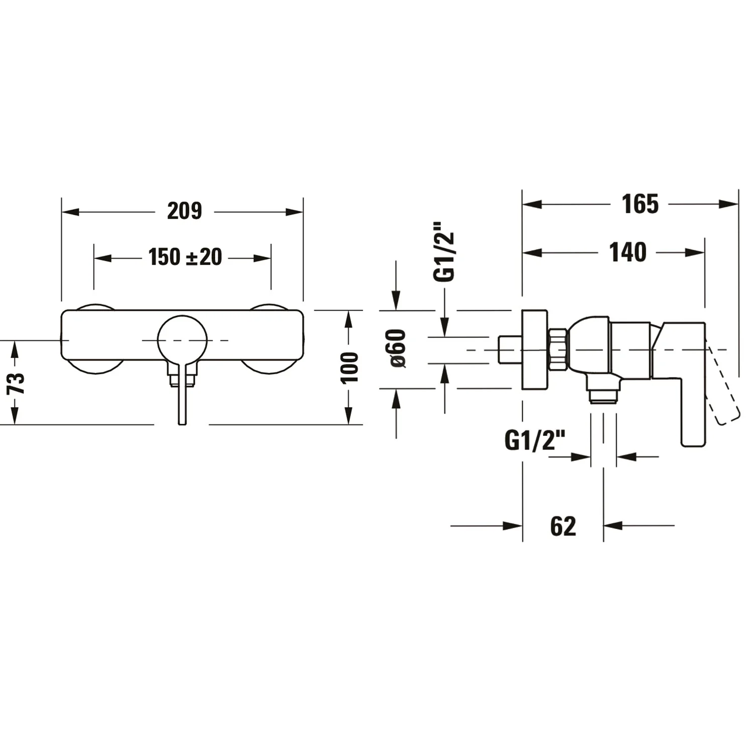 - Zweiloch-Brausearmatur für Wandmontage, Aufputz
