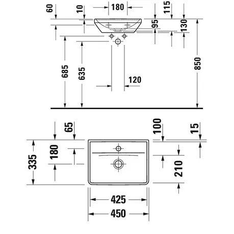 | Ausführung: | ohne Überlauf, mit Hahnloch |