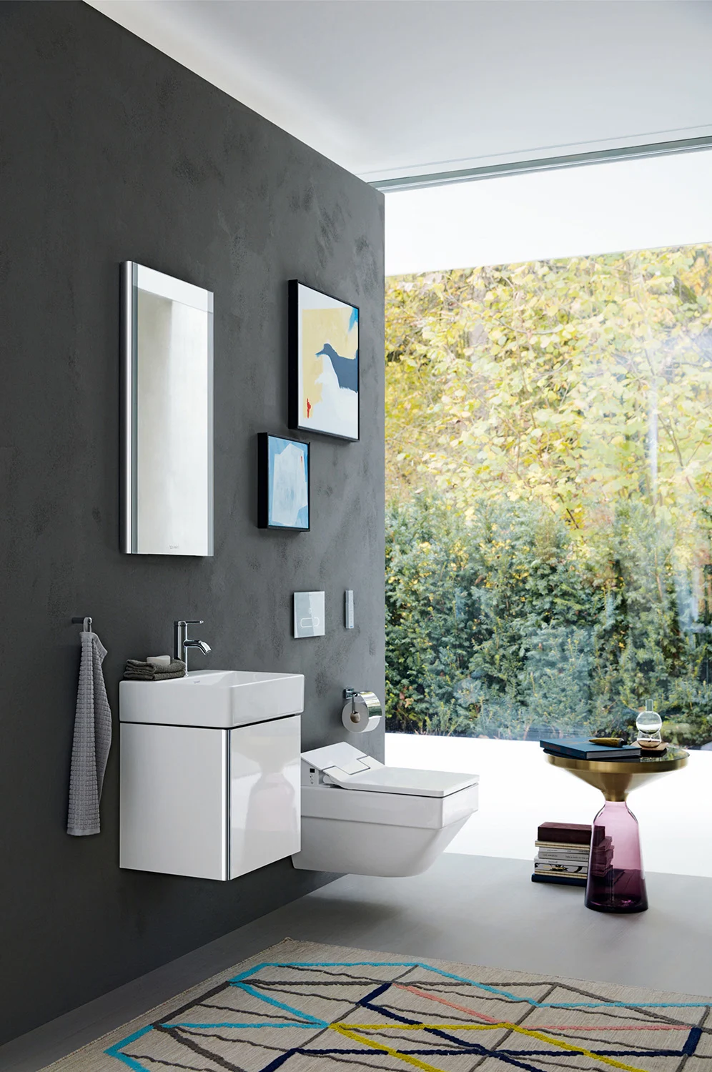 Je nach Ausführung eignet es ideal zur wandhängenden Einzelmontage oder zur Montage auf Waschtischunterbauten und Konsolen. Dabei harmoniert es perfekt mit vielen Duravit Möbelserien. Optional sorgt zudem die spezielle wasserabweisende WonderGliss Keramikbeschichtung für besonders leichte Reinigung.