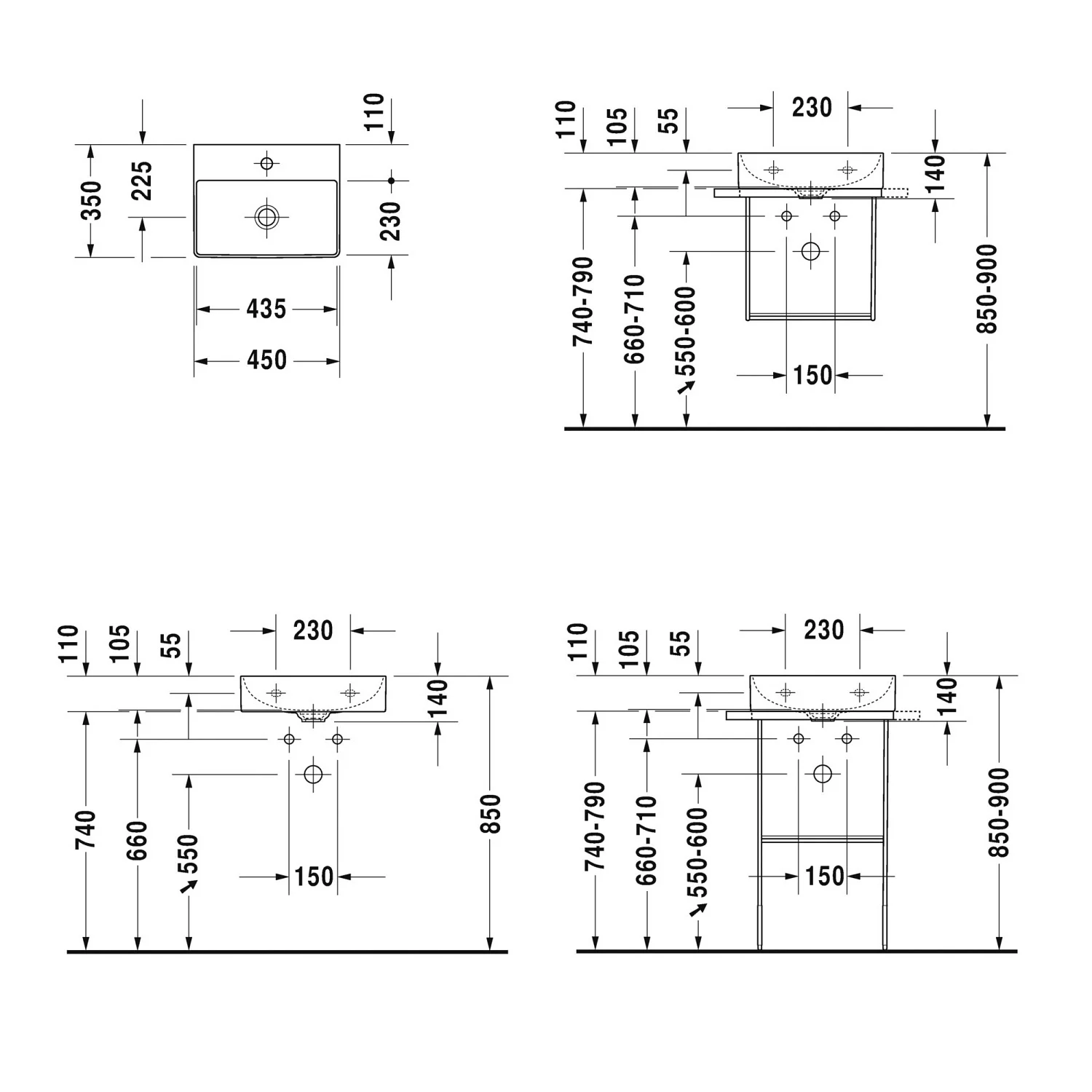 Duravit DuraSquare Handwaschbecken ohne Hahnloch 45 x 35 cm