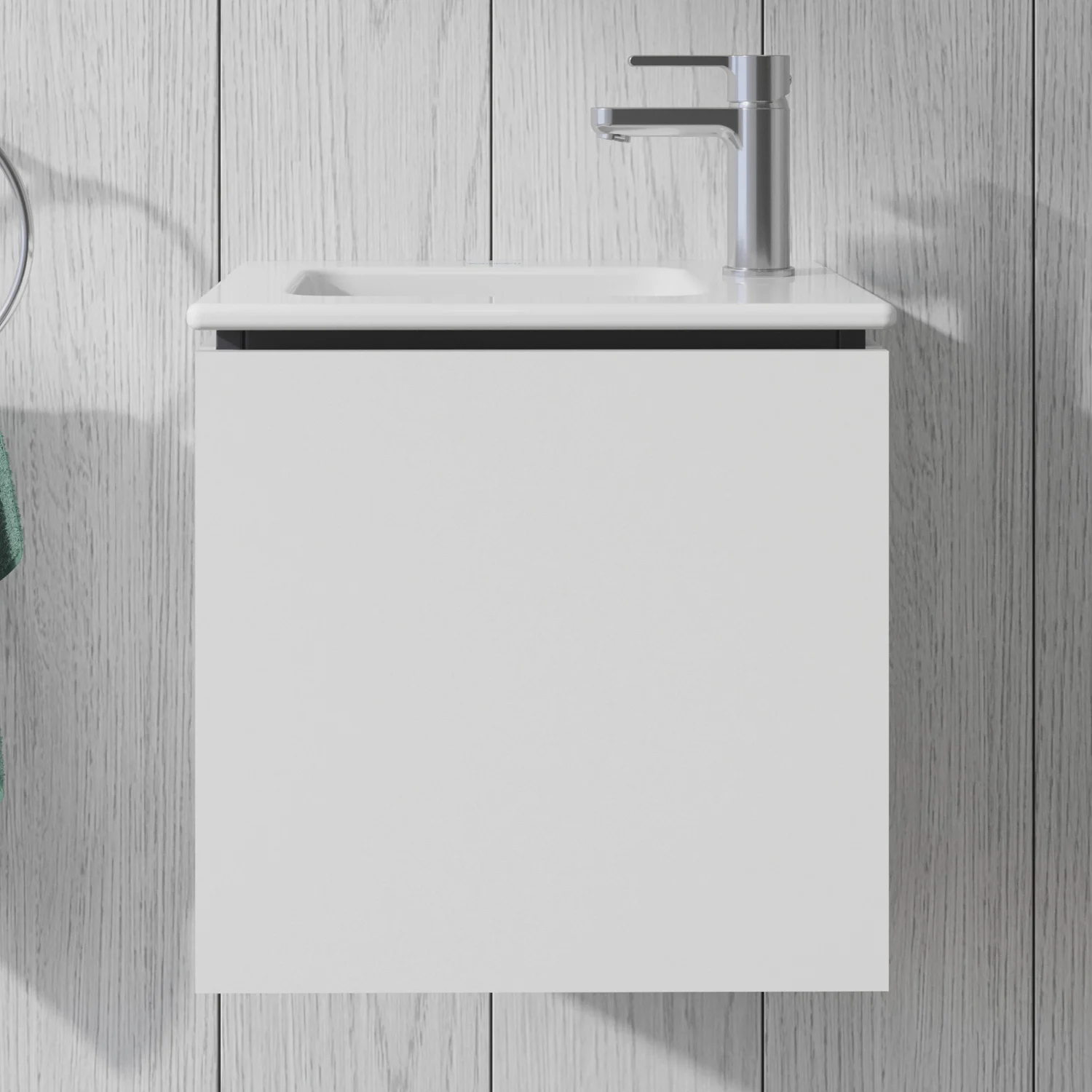 Dieser wandhängende Duravit-Waschtischunterbau stammt aus der stilvollen Badmöbel-Reihe L-Cube des Designers Christian Werner. Seine Möbel bestechen durch ihre ruhigen und klaren Formen, die auf alle unnötigen Elemente verzichten. Die glatte Front ohne Griff unterstreicht diesen Designanspruch. Geöffnet wird das Möbel dank Tip-on-Technik mittels einfachem Fingerdruck. Ein Automatiktürscharnier mit Dämpfung sorgt für ein sanftes Schließen der Tür. Es stehen zahlreiche Farb- und Oberflächengestaltungen von edlen Lacken bis hin zu natürlichen Holzoberflächen zur Auswahl. Zusammen mit dem passenden ME by Starck Handwaschbecken (#072343) ist das kompakte Möbel die ideale Lösung für kleine Bäder, wie z.B. das Gäste-WC. Der Waschtischunterbau wird in sorgfältiger Handarbeit unter Einsatz modernster Technik komplett in Deutschland hergestellt und genügt höchsten Qualitätsansprüchen. Zum Schutz vor Eindringen von Wasser und hoher Luftfeuchtigkeit gibt es keine offenen Kanten, der Unterbau ist also völlig nässeunempfindlich. Er wird komplett vormontiert geliefert.