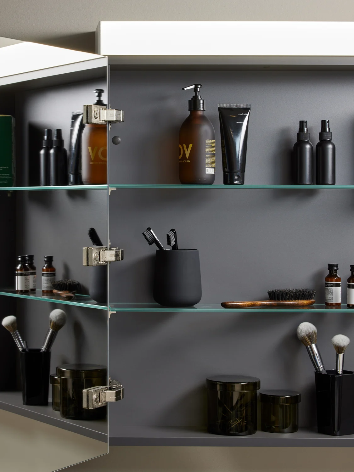 Zur Montage ist zusätzlich ein Einbauset für Spiegelschränke erforderlich (siehe Zubehör).