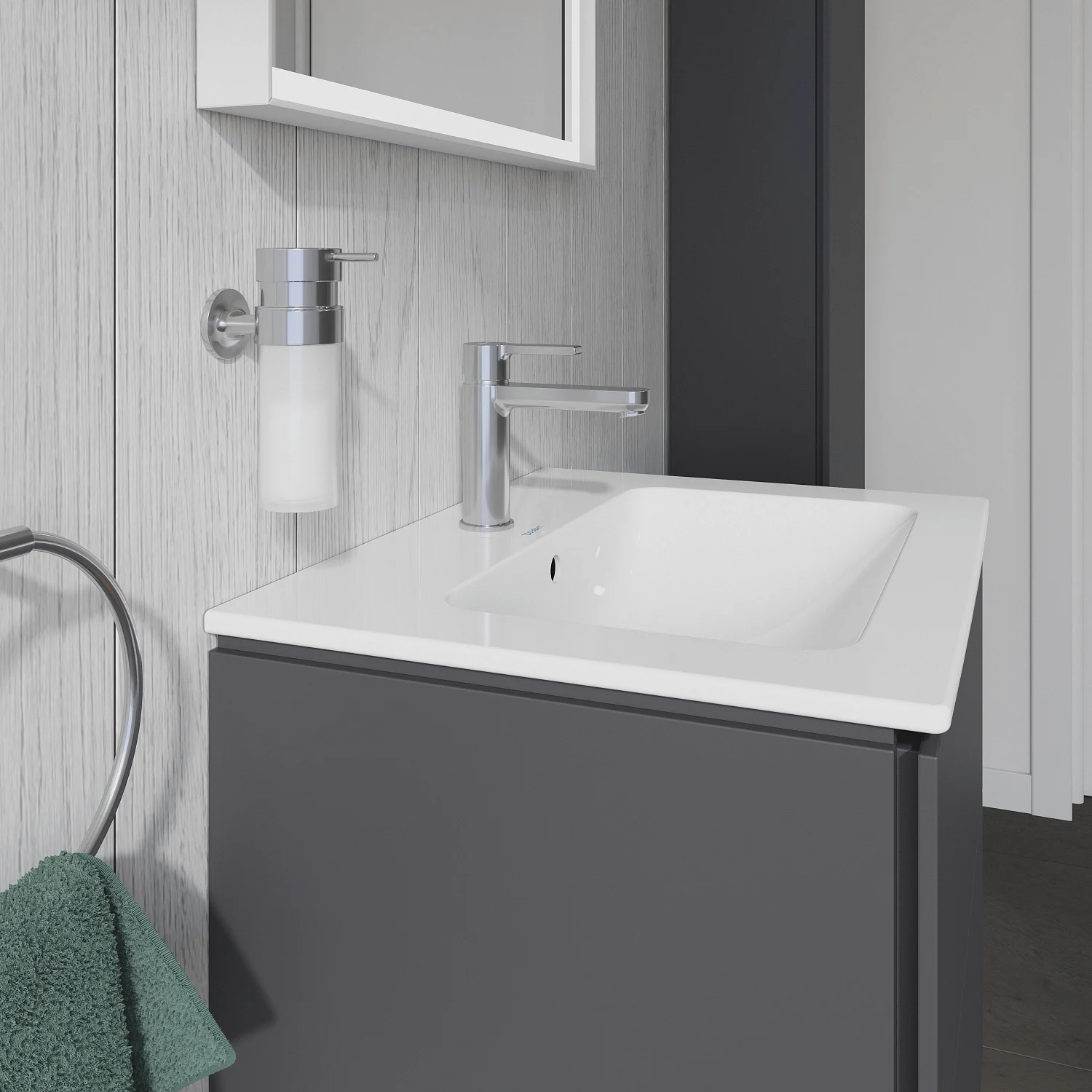 Der ME by Starck Möbelwaschtisch überzeugt mit Philippe Starcks ausdrucksstarkem, kantigen Design, das sich innen dennoch weich gerundet zeigt. Das großzügige Becken mit schmalem, umlaufenden Rand ist funktional und wohlproportioniert. Die hochwertige Sanitärkeramik zeichnet sich durch widerstandsfähige, kratzresistente Oberflächen aus und ist neben klassischem Weiß auch in der optisch interessanten und haptisch angenehmen Farbvariante Weiß Seidenmatt verfügbar. Optional sorgt die spezielle wasserabweisende WonderGliss Keramikbeschichtung für besonders leichte Reinigung. Das Waschbecken garantiert zudem maximale Flexibilität und individuellen Gestaltungsspielraum. Es eignet sich sowohl zur wandhängenden Einzelmontage, wahlweise kombinierbar mit einer Stand- oder Halbsäule, lässt sich aber ebenso gelungen mit einem passenden Unterschrank aus verschiedensten Duravit Möbelserien kombinieren.