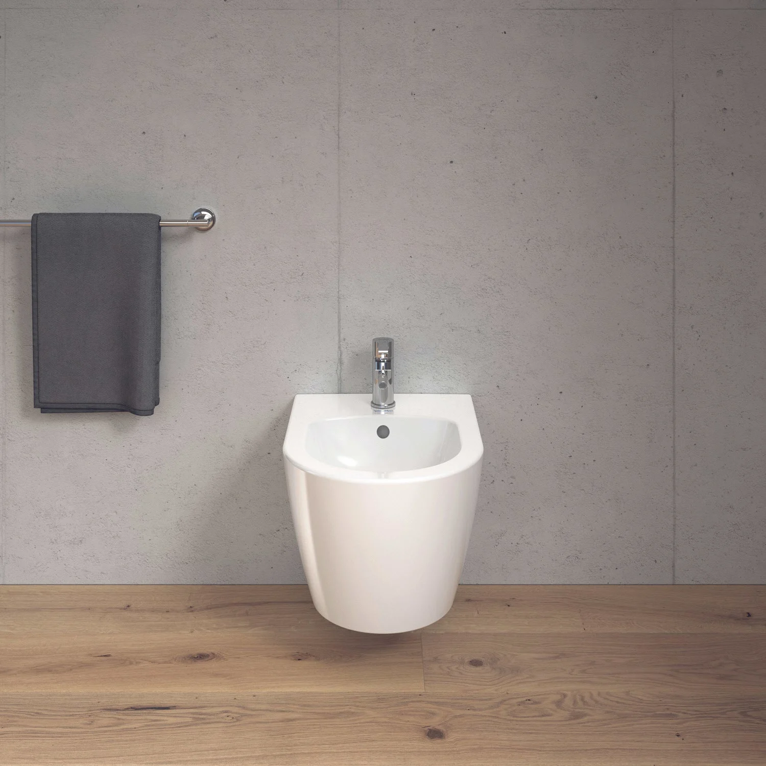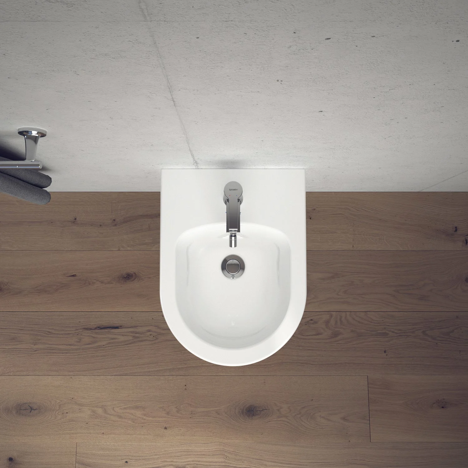 Perfekte Formgebung und nachhaltiger Hygiene-Komfort selbst im kleinen Bad: dafür steht das Duravit ME by Starck Compact Wand Bidet! Das ikonische Modell von Star-Designer Philippe Starck bildet auch in der platzsparenden Compact-Variante eine gelungene Ergänzung zu den modernen Wand-WCs derselben Serie. Sein verkürztes, kubisch geformtes Becken aus hochwertiger Sanitärkeramik passt zu vielen unterschiedlichen Bad-Styles und zeigt sich als ideale Lösung für beengte Raumverhältnisse. Dank seiner breiten, flachen Hahnlochbank bietet es dennoch genügend Platz für eine stilvolle Bidet-Einlocharmatur. Als optionales Hygiene-Feature für besonders leichte Reinigung kann zudem die wasserabweisende WonderGliss Keramikbeschichtung hinzugefügt werden. Die verdeckte Durafix-Wandbefestigung verspricht schnelle und problemlose Installation und bleibt dabei selbst völlig unsichtbar. Neben klassischem Weiß steht auch Weiß Seidenmatt als optisch interessante und haptisch angenehme Farbvariante zur Verfügung.