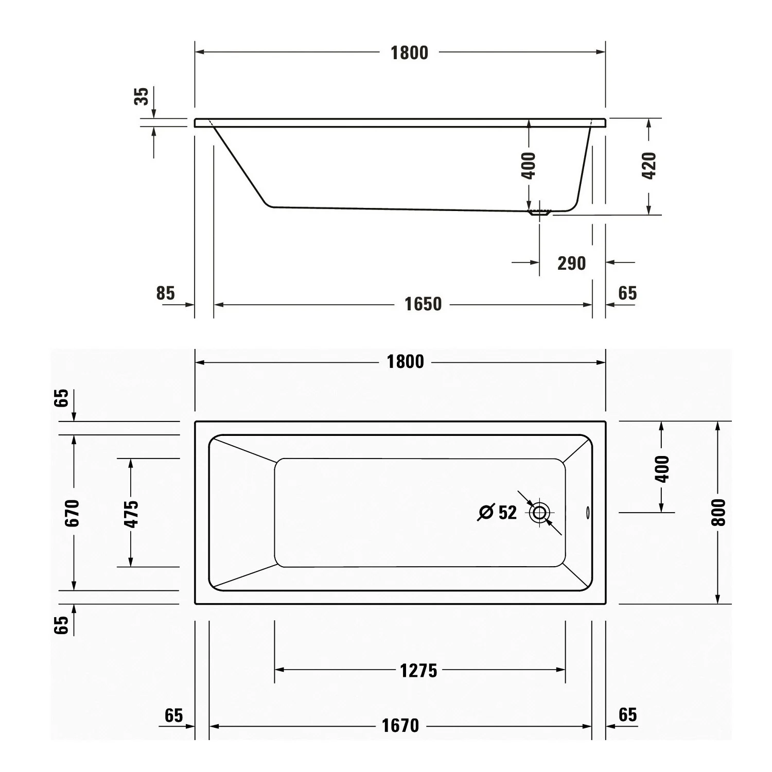 Duravit No. 1 Rechteck-Badewanne 180 x 80 cm mit 1 Rückenschräge