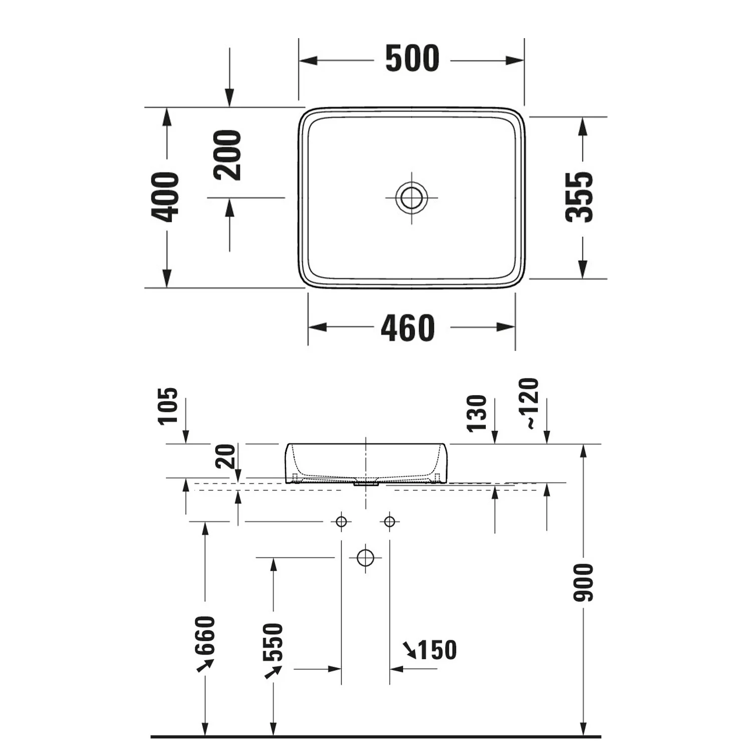Duravit Qatego Aufsatzbecken eckig 50 x 40 cm mit HygieneGlace