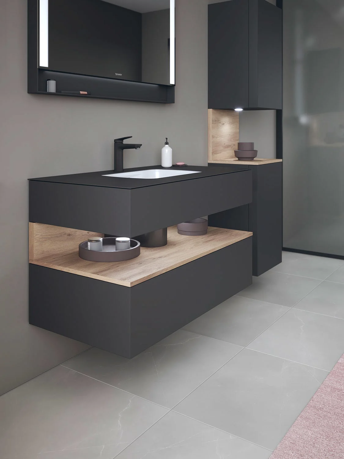 Duravit Qatego Einbauwaschtisch mit Konsolenwaschtischunterbau 120 x 60 cm, 1 Auszug, mit LED Beleuchtung
