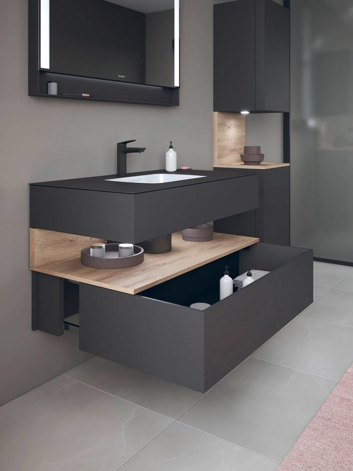 Duravit Qatego Einbauwaschtisch mit Konsolenwaschtischunterbau 80 x 60 cm, 1 Auszug, mit LED Beleuchtung